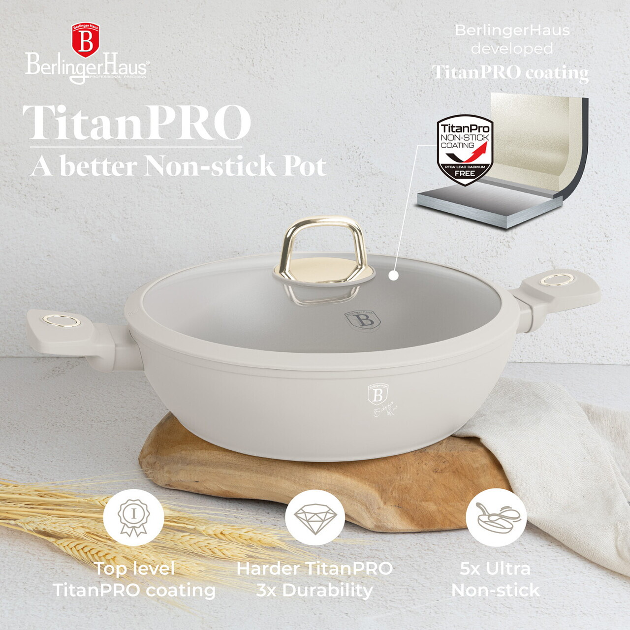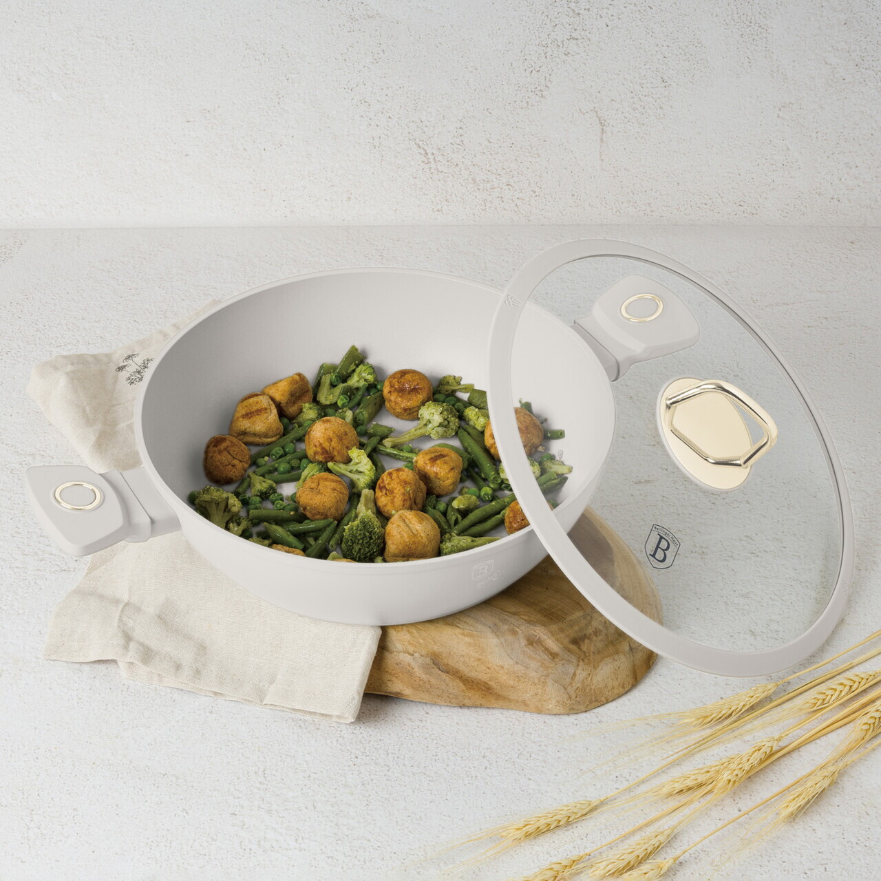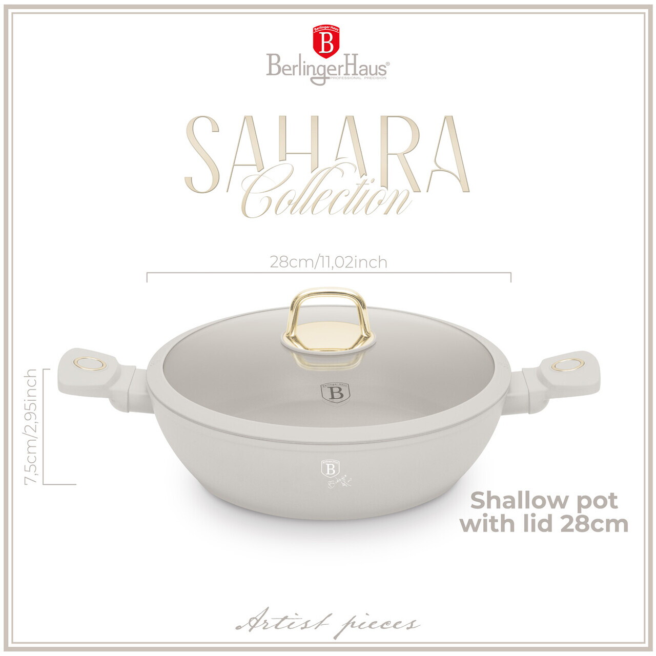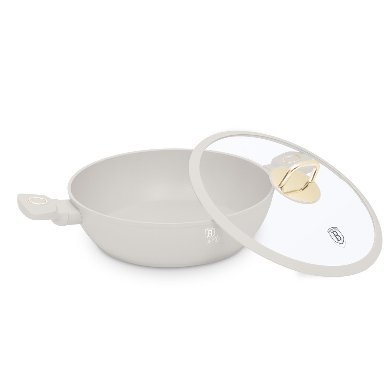 Oala cu capac Berlinger Haus, Sahara, 28 cm, 3.8 L, aluminiu forjat, crem mat