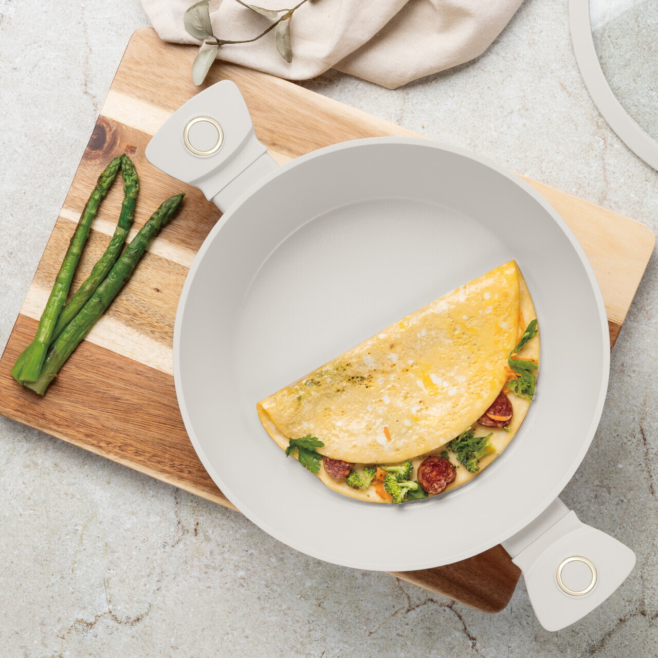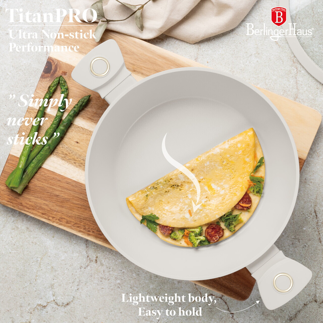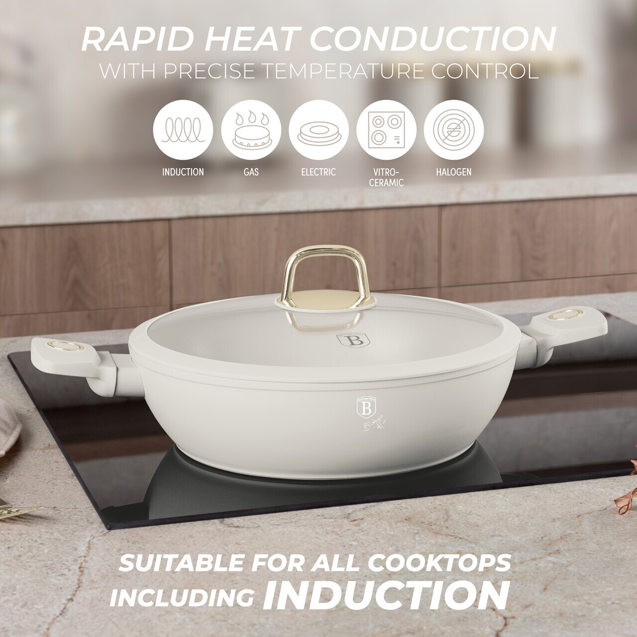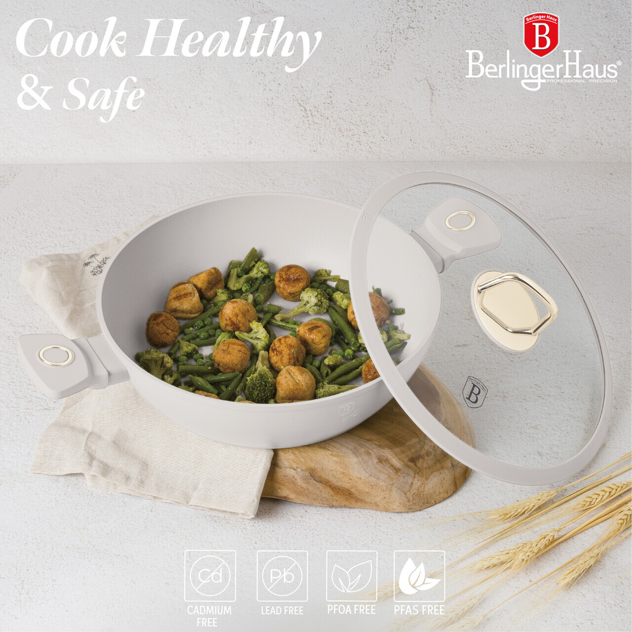 Oala cu capac Berlinger Haus, Sahara, 28 cm, 3.8 L, aluminiu forjat, crem mat