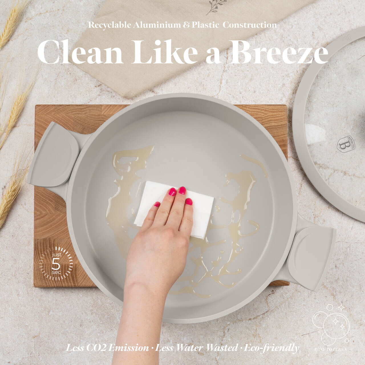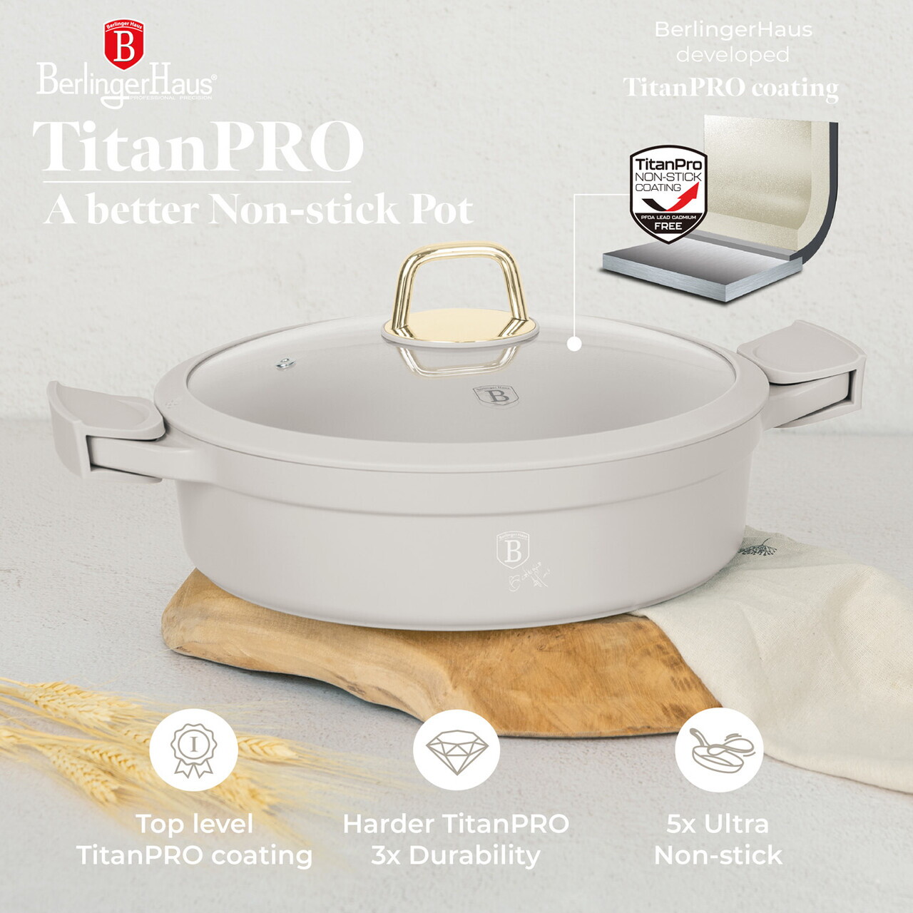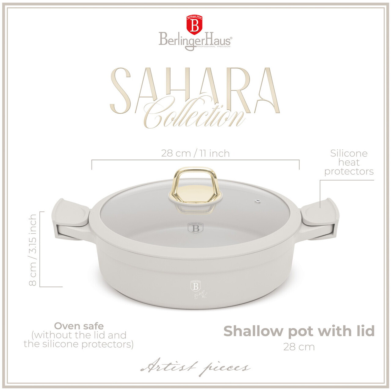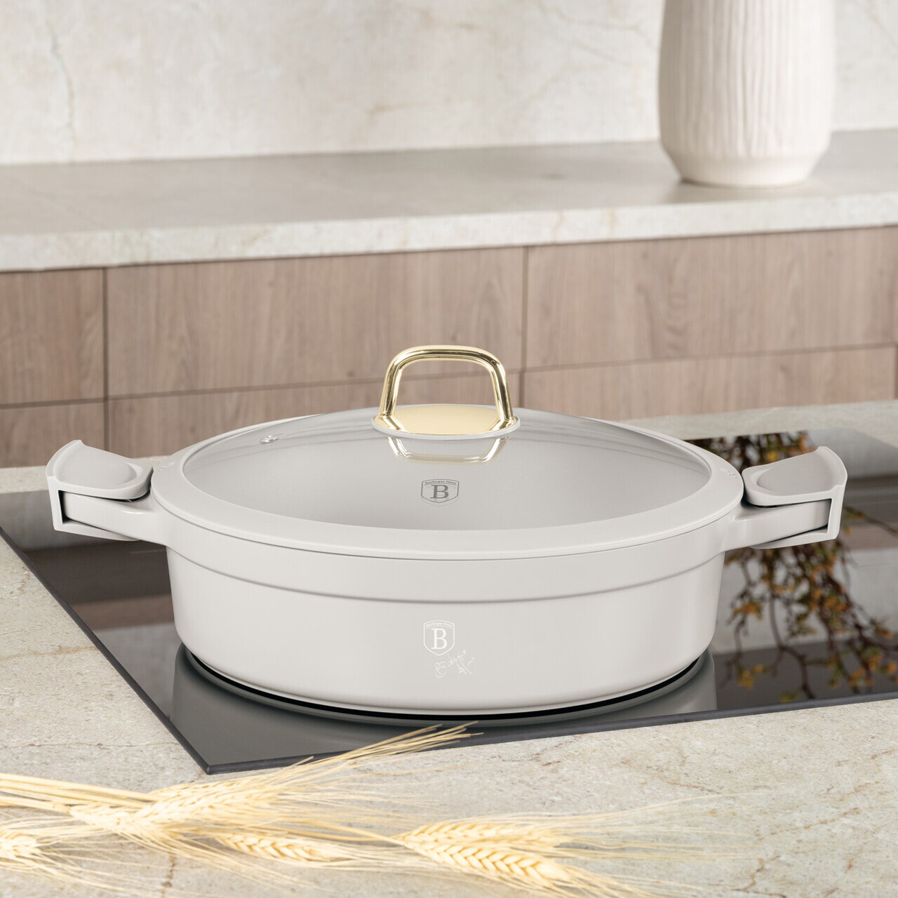 Oala cu capac Berlinger Haus, Sahara, 28 cm, 4.2 L, fonta, crem mat