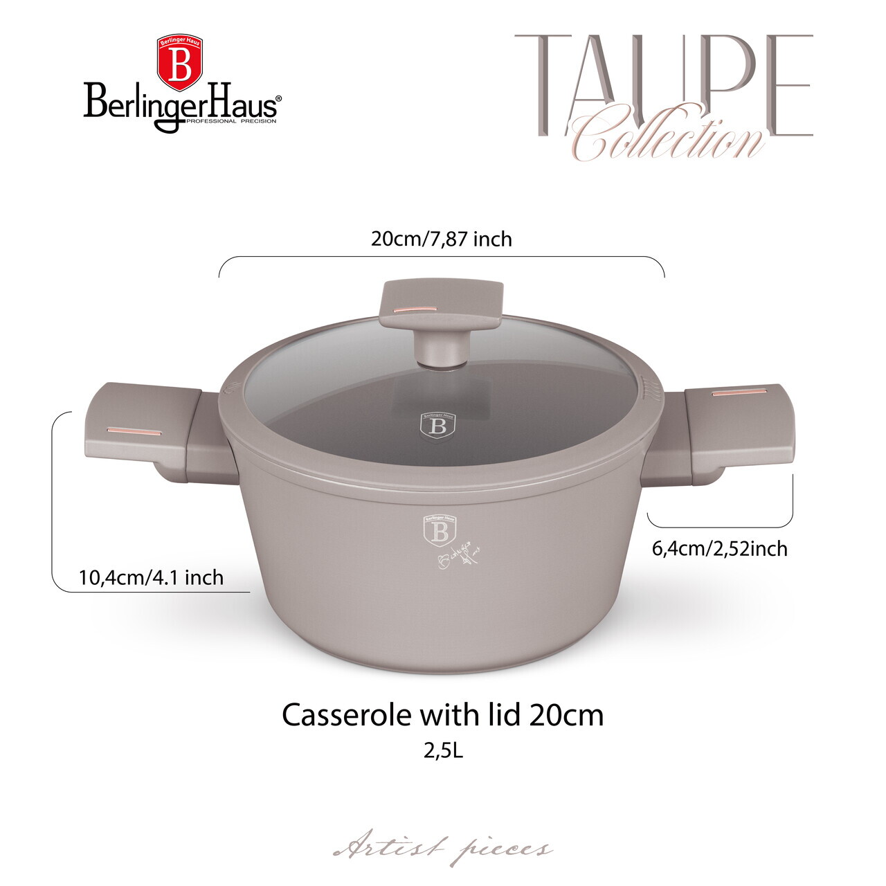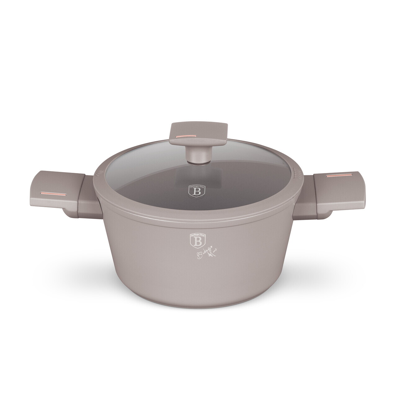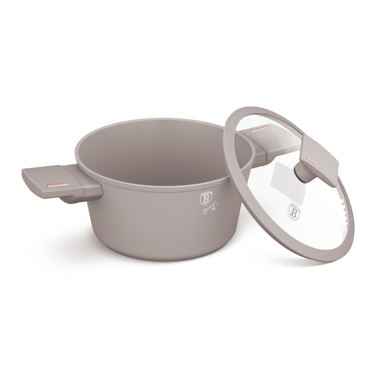 Oala cu capac Berlinger Haus, Taupe, 20 cm, 2.5 L, aluminiu forjat, taupe mat