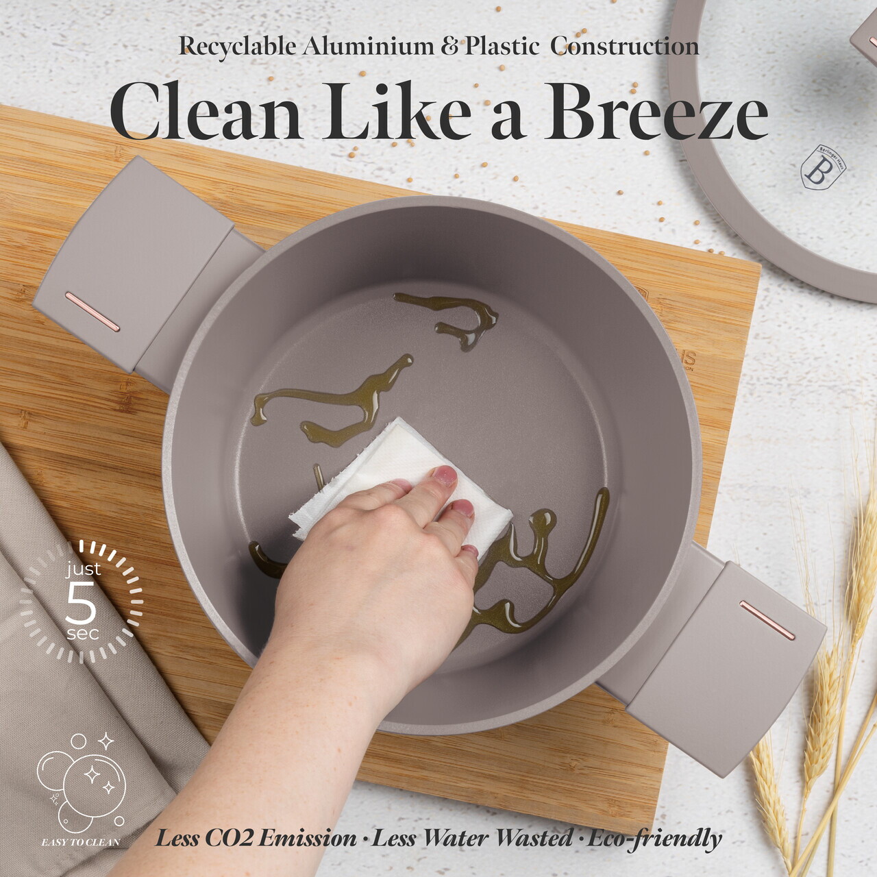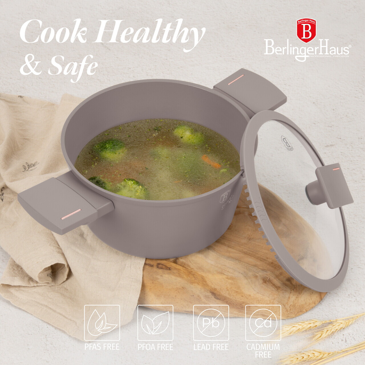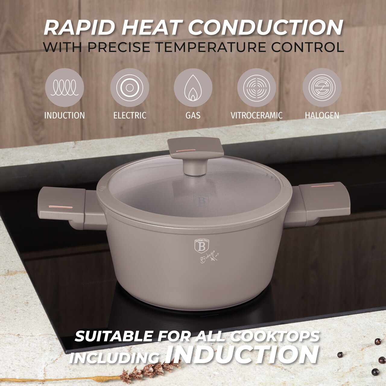 Oala cu capac Berlinger Haus, Taupe, 20 cm, 2.5 L, aluminiu forjat, taupe mat