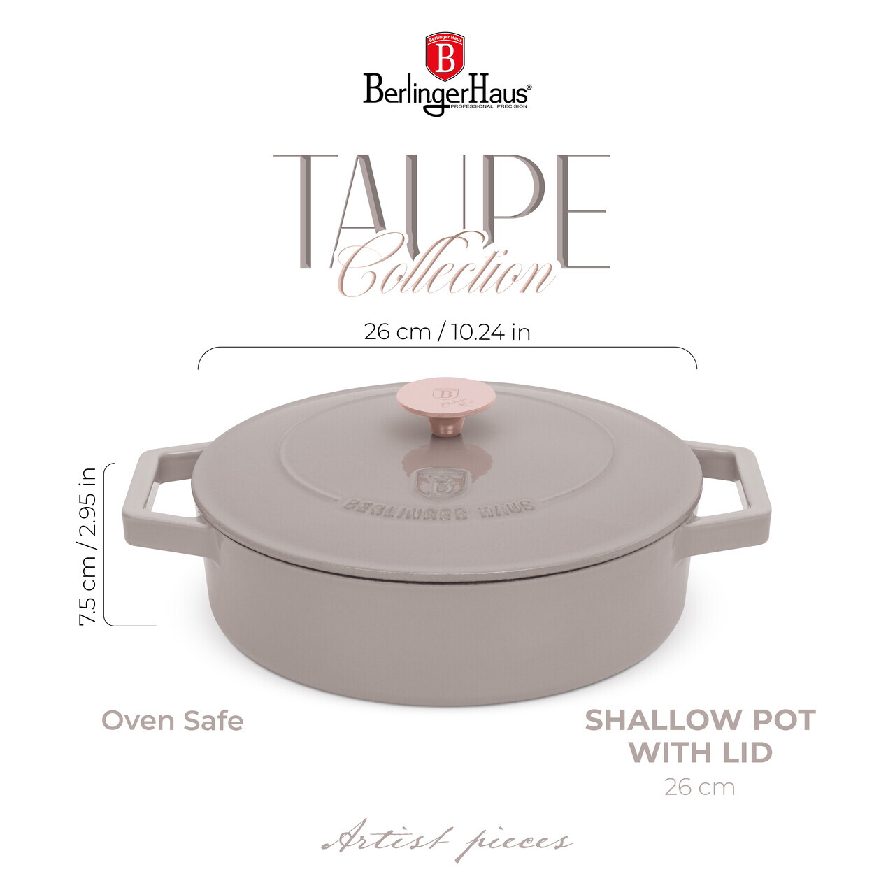 Oala cu capac Berlinger Haus, Taupe, 26 cm, 2.57 L, fonta, taupe