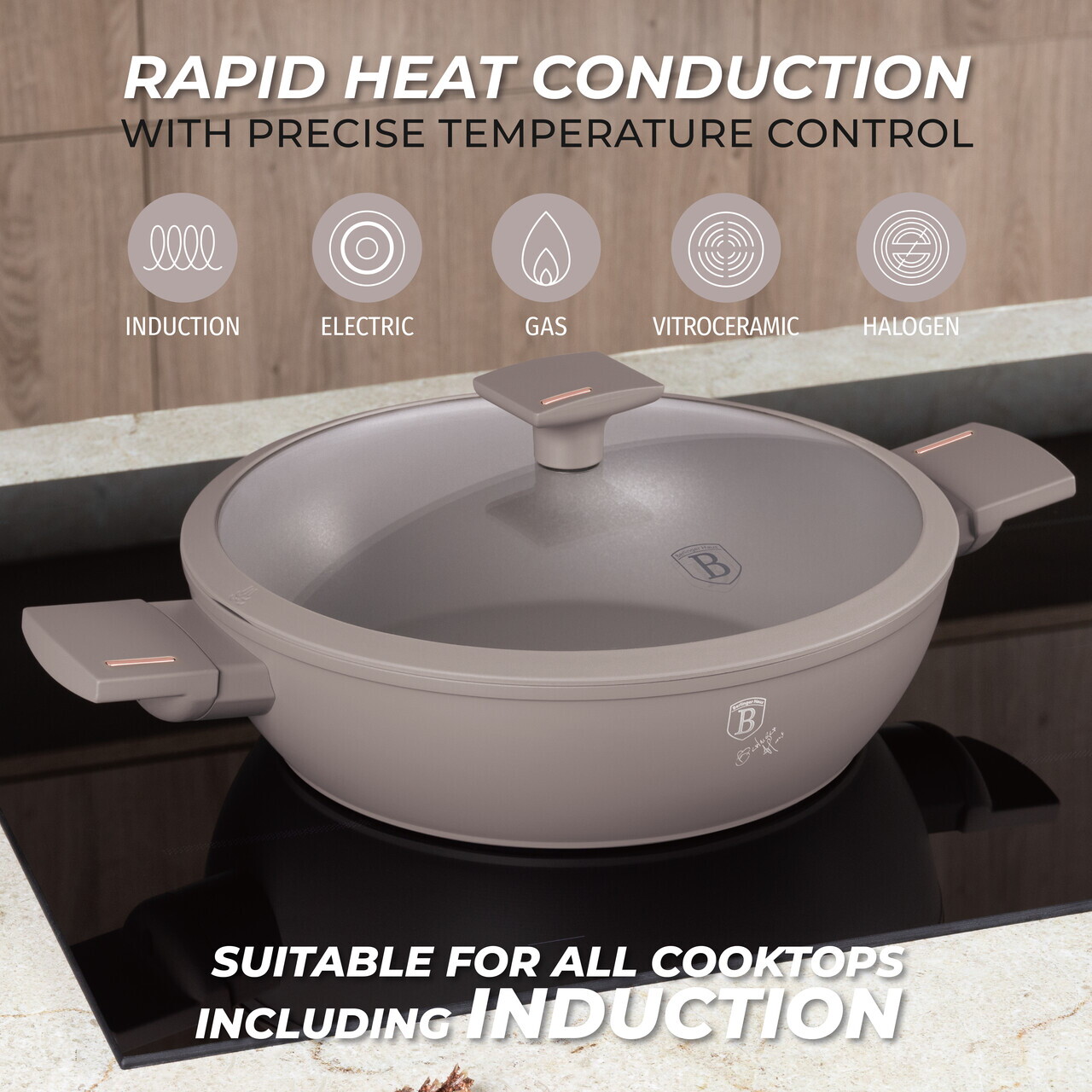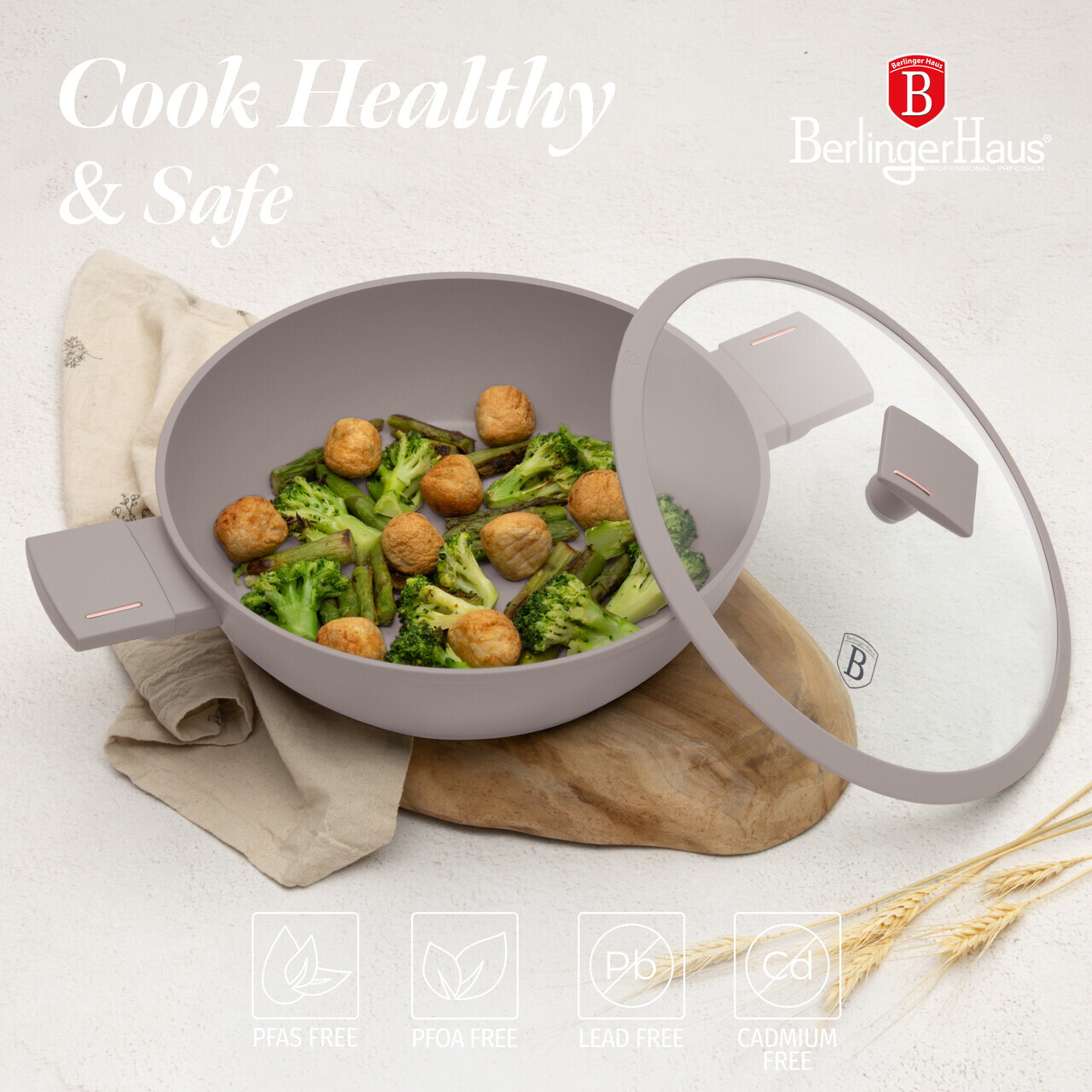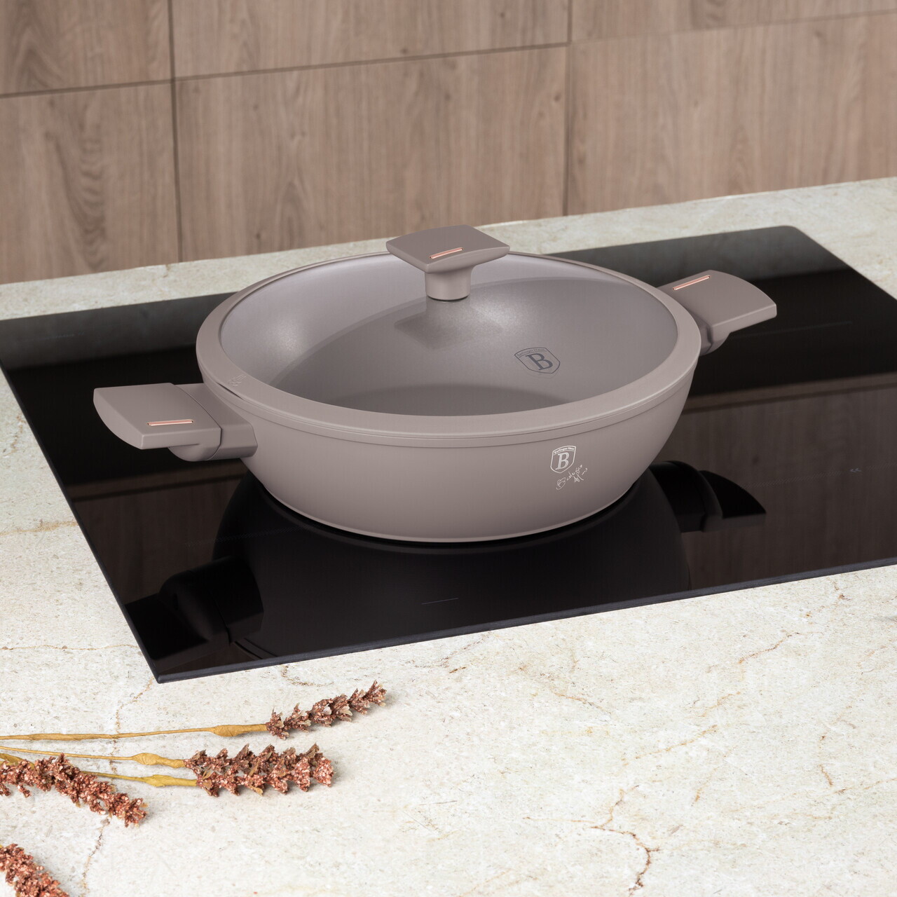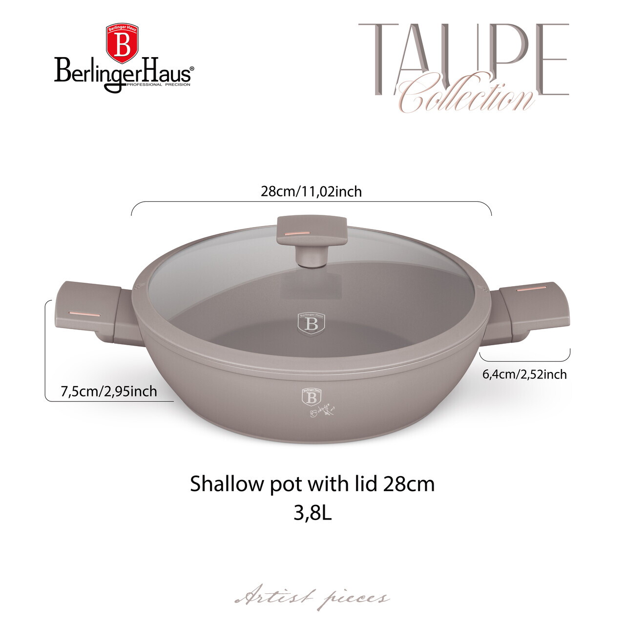 Oala cu capac Berlinger Haus, Taupe, 28 cm, 3.8 L, aluminiu forjat, taupe mat