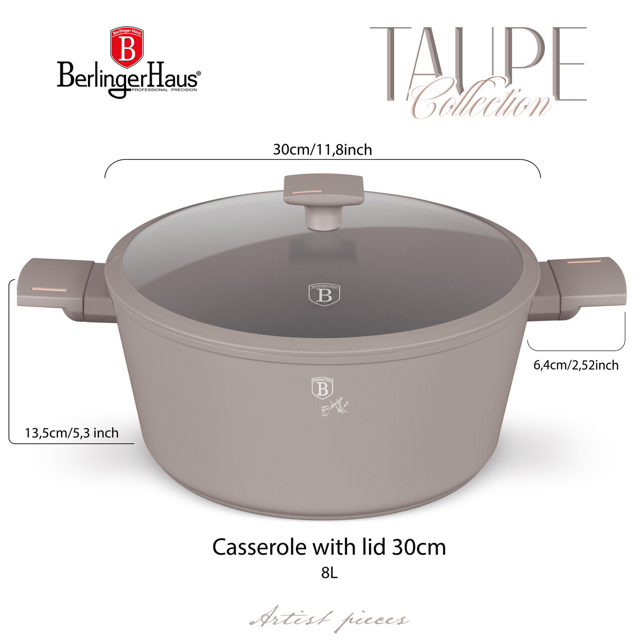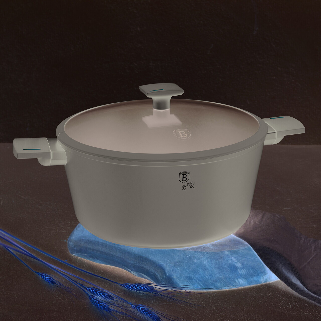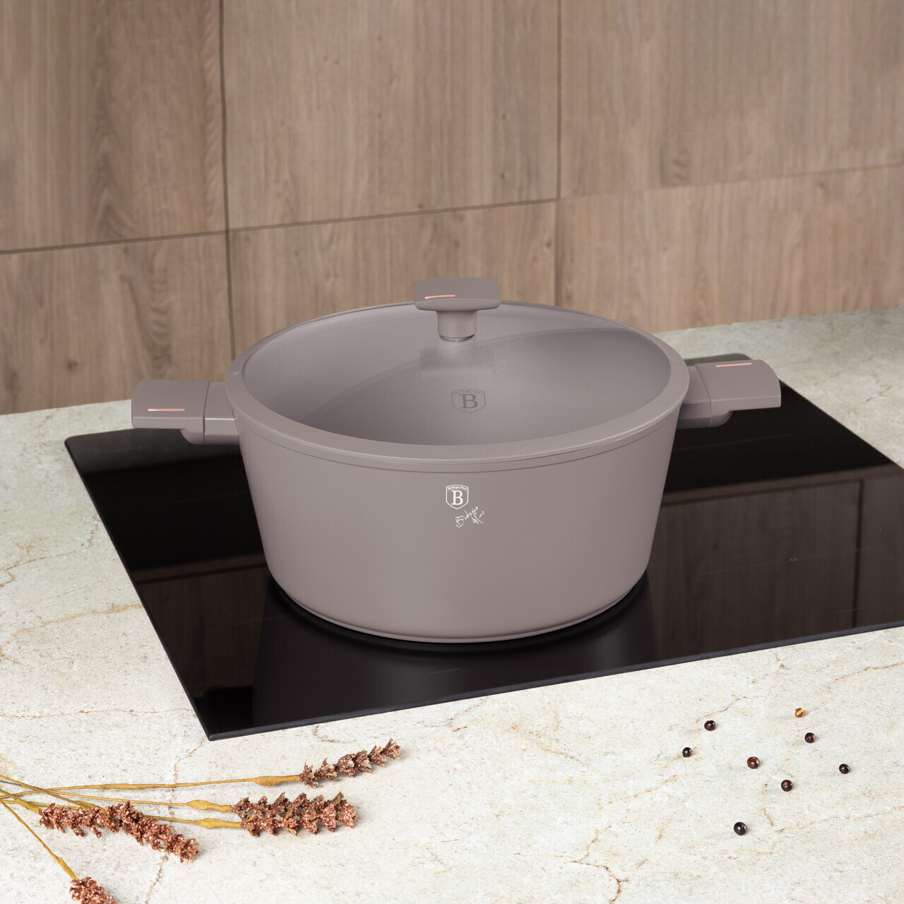 Oala cu capac Berlinger Haus, Taupe, 30 cm, 8 L, aluminiu forjat, taupe mat