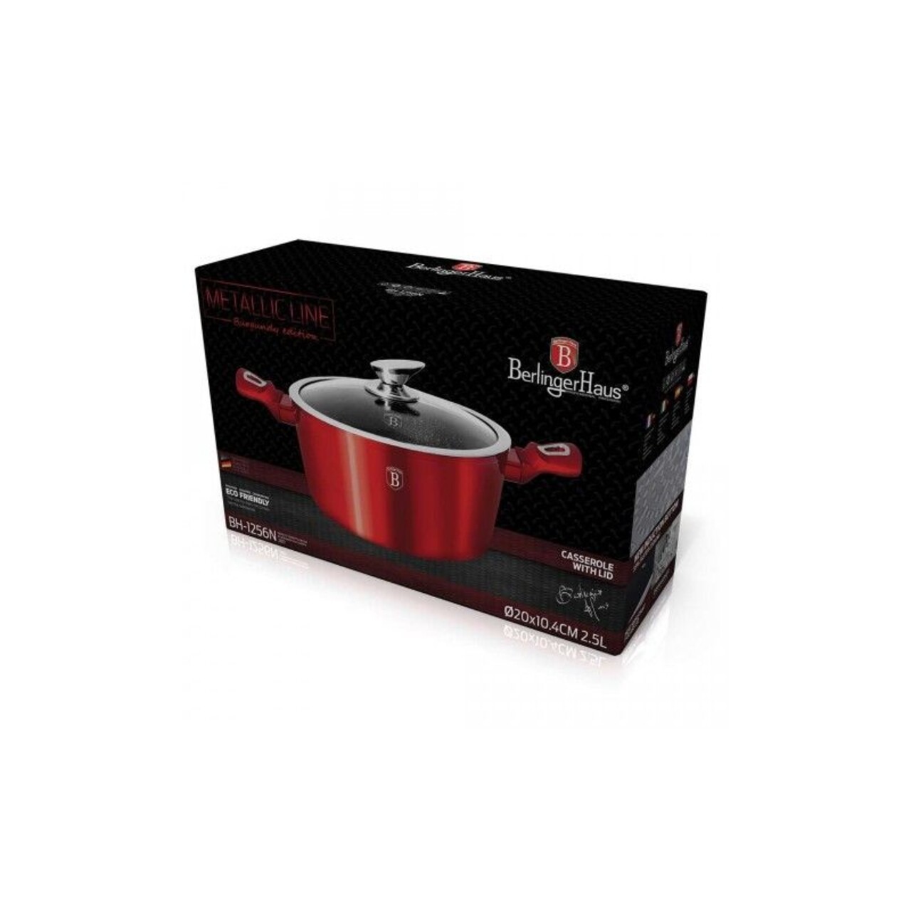 Oala cu capac, Berlinger, Metallic Line Burgundy Edition, 24 cm Ø, 4 L, aluminiu turnat/marmura