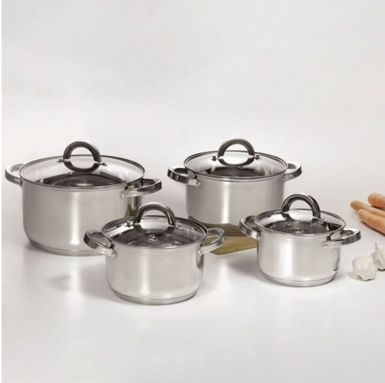 Oala din otel inoxidabil. Fund capsulat in cinci straturi. Masurarea scarii in interiorul vaselor - ajuta la masurarea cantitatii adecvate de lichid. Capacele din sticla temperata. Manere confortabile din otel inoxidabil. Finisaj oglinda in interior si exterior.