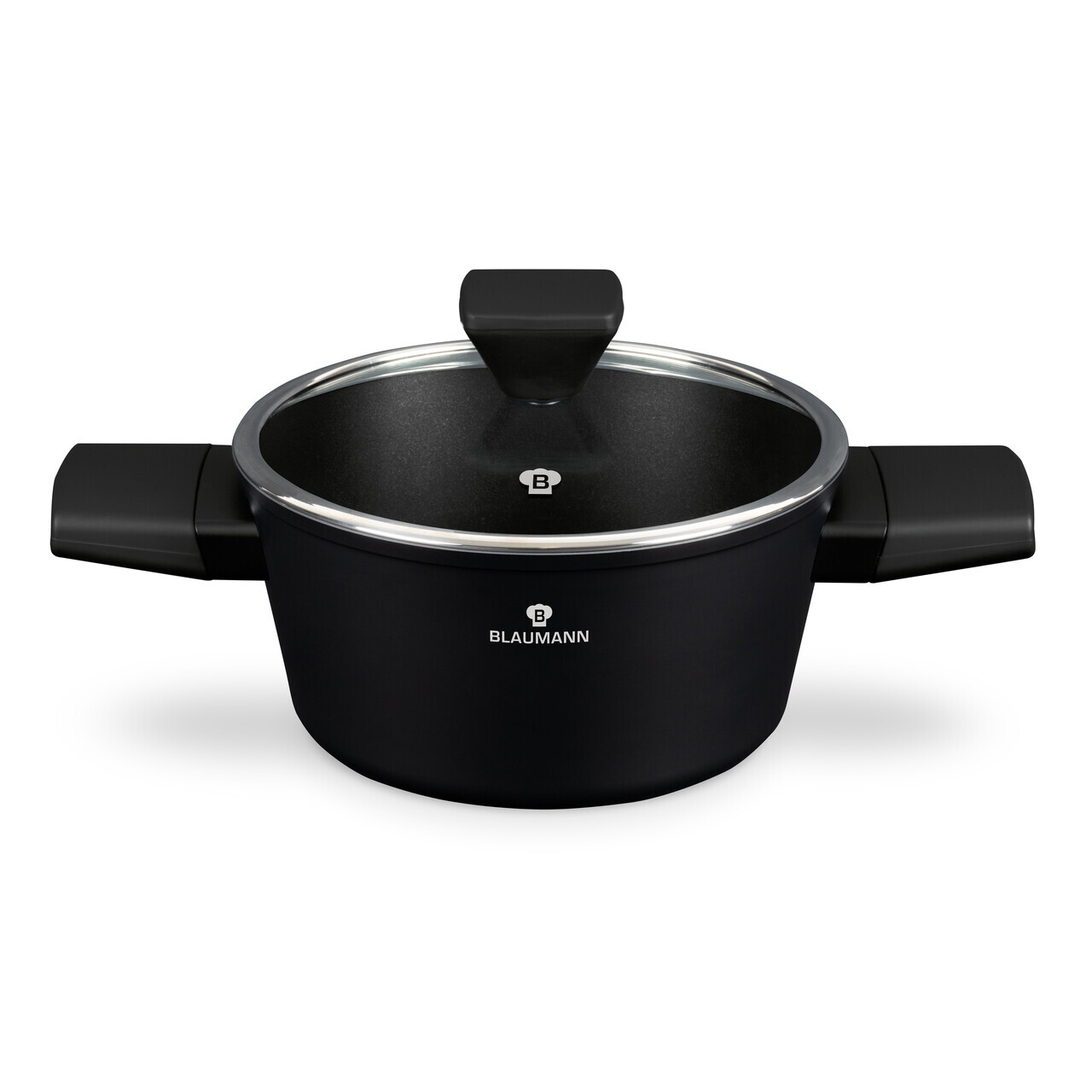 Oala cu capac Blaumann, Black Silver, 20 cm, aluminiu forjat, negru mat