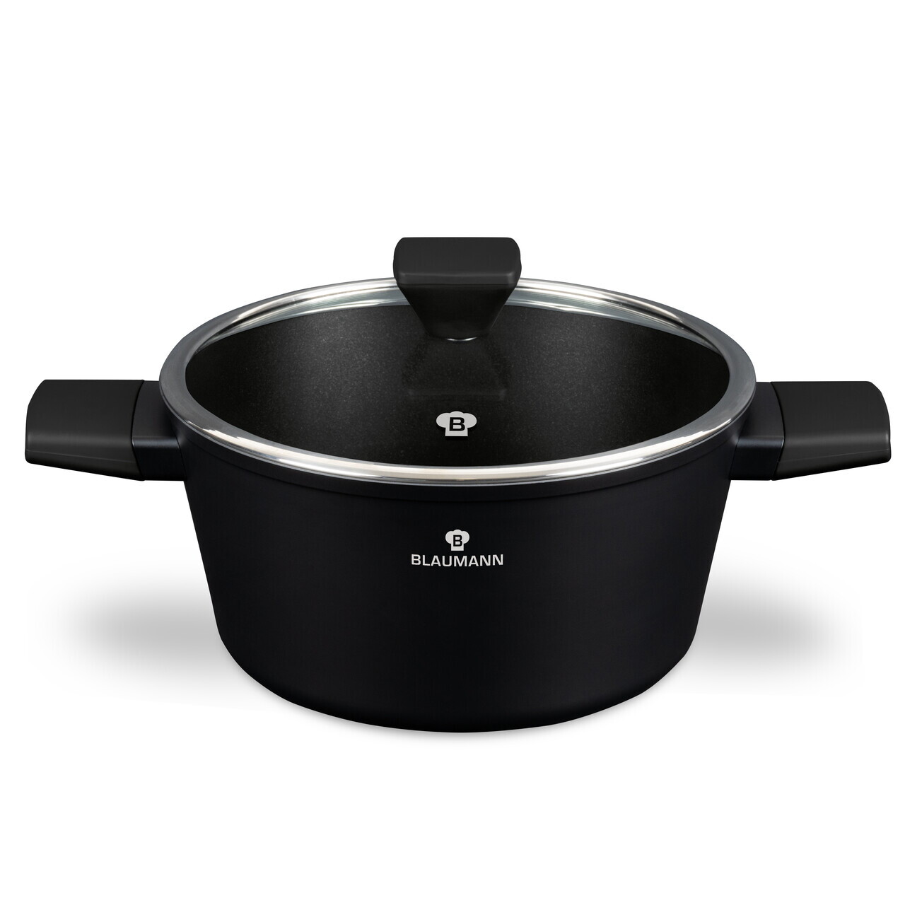 Oala cu capac Blaumann, Black Silver, 24 cm, aluminiu forjat, negru mat