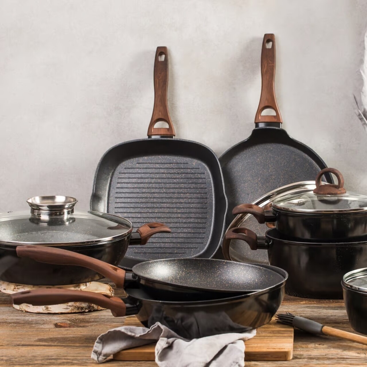 Vasele de gatit ale liniei DARKWOOD sunt realizate din aluminiu forjat care este rezistent la deformare.