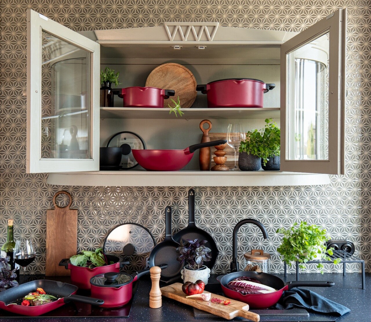 Oala cu capac Noel, Ambition, 24 cm, 4.7 L, aluminiu, visiniu/negru