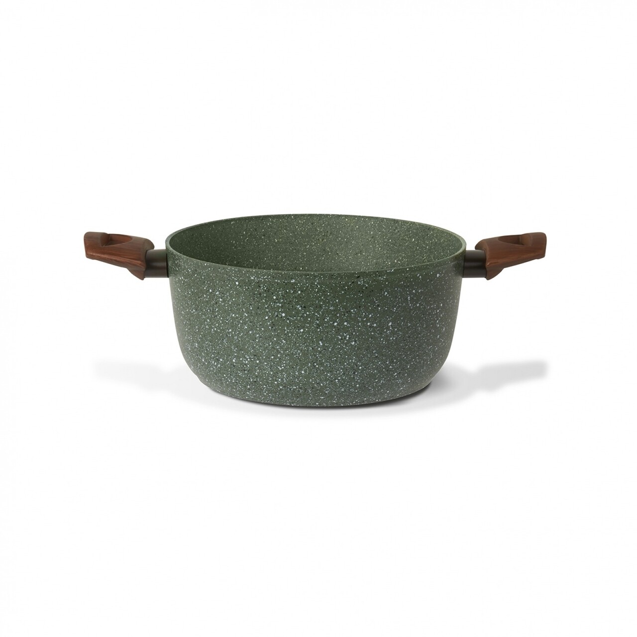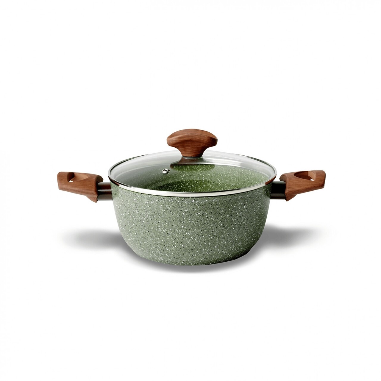 Oala din aluminiu cu 6 straturi antiaderente, 5 din aceste straturi sunt intarite cu particule minerale, este super rezistenta, sigura si versatila, fiind perfecta pentru orice reteta. Cele 5 straturi antiaderente cu efect de piatra sunt realizate folosind glicerina din plante ce nu au suferit modificari genetice, astfel se creaza un efect antiaderent natural. Datorita tehnologiei de inductie caldura se distribuie uniform pe toata suprafata tigaii si o protejeaza impotriva socurilor termice, transformand gatitul intr-o experienta placuta. Manerul ergonomic, elegant, cu aspect de lemn, placut la atingere confera o manevrare usoara a tigaii. Capacul din sticla rezistenta, otel si maner ergonomic cu aspect de lemn, se potriveste la toate cratitele si tigaile din gama Natura Induction cu diametrul de 24 cm. Capacul este potrivit, de asemenea, si pentru alte tigai sau vase de gatit cu diametrul corespunzator. Poate fi spalata, in conditii de siguranta, in masina de spalat vase. Potrivita pentru toate sursele de caldura, inclusiv pentru inductiei. Oala nu contine nichel, metale grele sau PFOA, fiind sigura pentru sanatate. A nu se lasa la indemana copiilor.