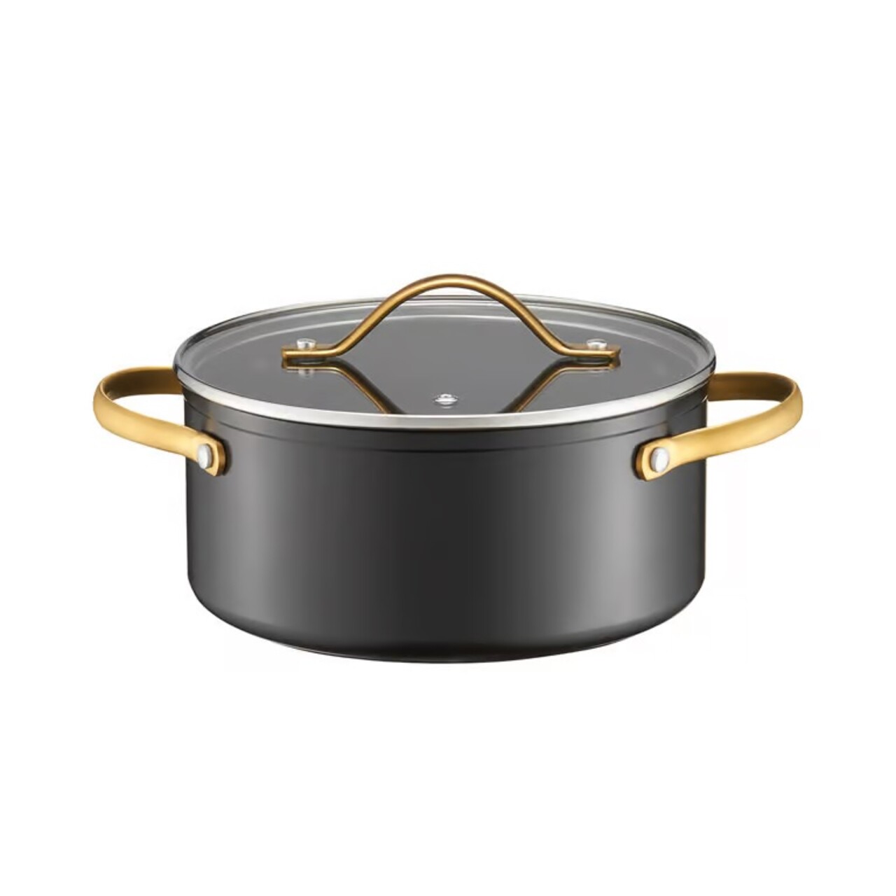 Oala cu capac Royal Gold, Ambition, 20 cm, 2.8 L, aluminiu forjat, strat antiaderent Qualum Basic, gri/auriu