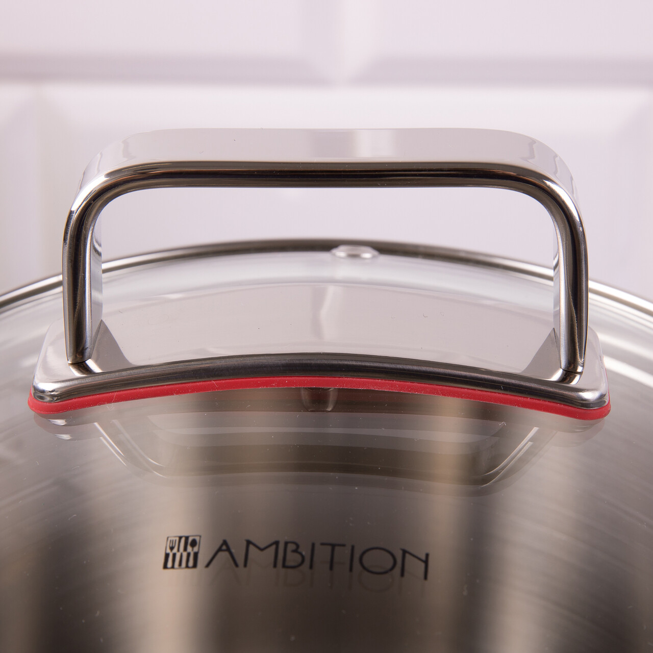 Oalele din linia Selection fabricate de brandul Ambition au fost concepute pentru a satisface cei mai exigenti clienti. Realizate din otel inoxidabil de cea mai buna calitate 18/10 (AISI 304). Acest tip de otel nu interactioneaza cu alimentele, nici macar cu produsele acide. Este rezistent la activitatea acizilor si bazelor concentrate si la temperaturi ridicate. Partile laterale ale vaselor au o grosime de 0.7 mm, ceea ce le permite sa pastreze alimentele calde mai mult timp. Oalele Selection au fundul in trei straturi (otel-aluminiu-otel) cu o grosime de 4.2 mm. Aceasta face ca caldura acumulata in timpul incalzirii sa se raspandeasca uniform. Fundul multistrat permite, de asemenea, mentinerea temperaturii mai mult timp dupa ce se gateste. Pe partea interioara a vaselor exista un indicator de capacitate care ajuta la masurarea cantitatilor adecvate de lichide. Vasele de selectie sunt potrivite pentru toate tipurile de aragazuri, inclusiv pentru cele cu inductie. De asemenea, pot fi utilizate in siguranta in cuptor pana la 180ºC, astfel incat sunt perfecte nu numai pentru gatit, ci si pentru coacere. Capacele sunt fabricate din sticla securizata. Au covorase din silicon intre sticla capacului si maner. Acestea protejeaza manerele capacului impotriva incalzirii.