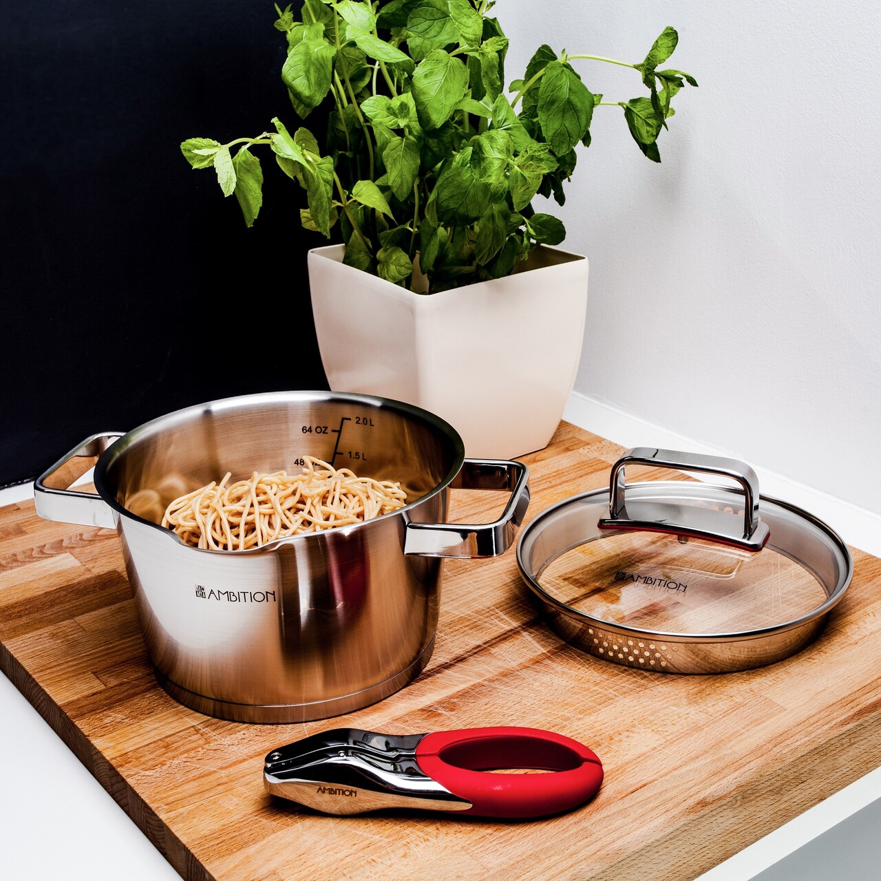 Oala cu capac strecurator Selection, Ambition, 18 cm, 2.3L, inox/sticla, argintiu/transparent