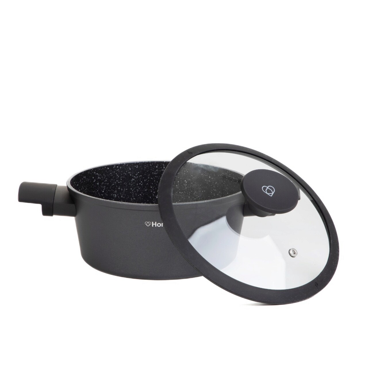 Oala cu capac Tristan, Homla, 2.4 L, aluminiu/sticla, negru