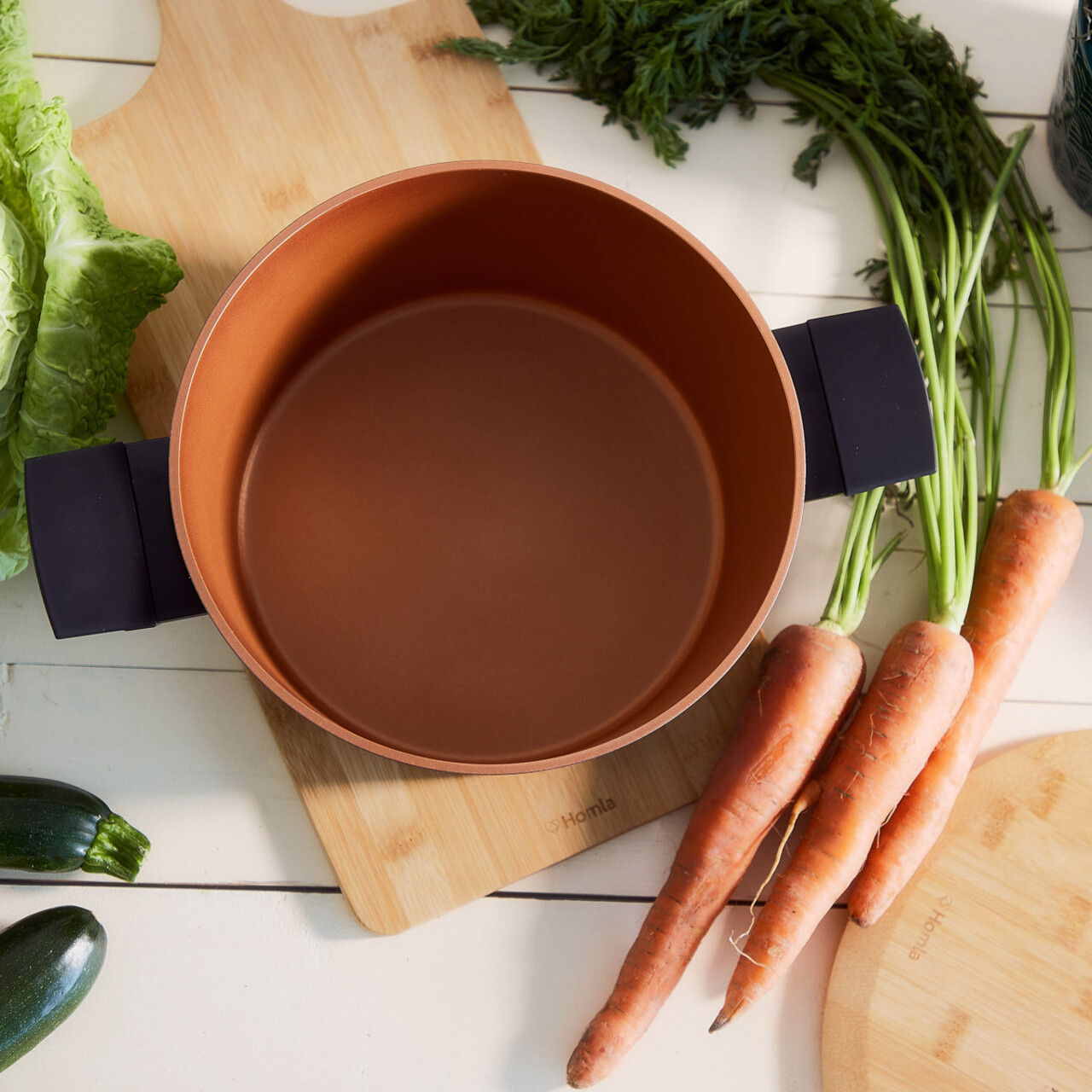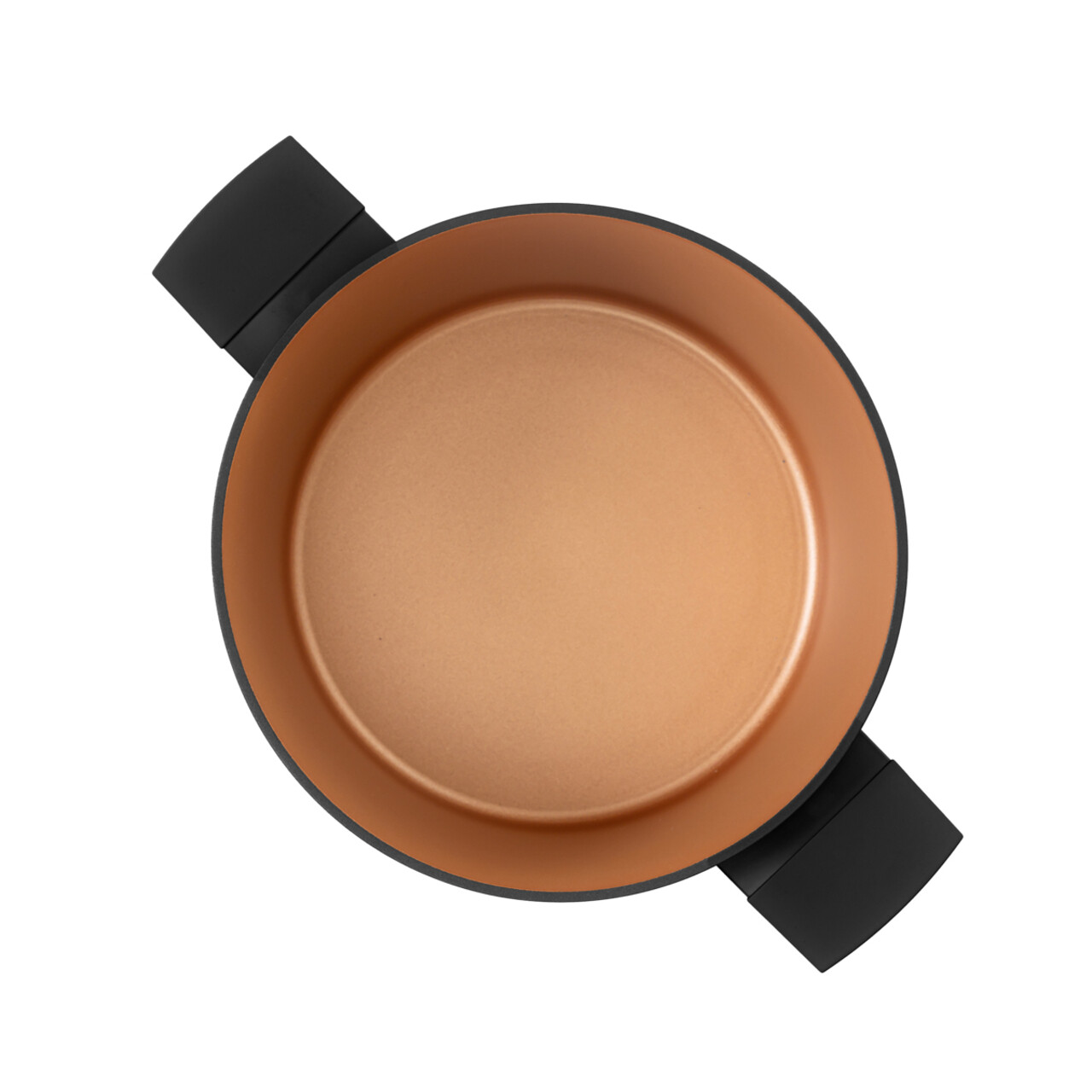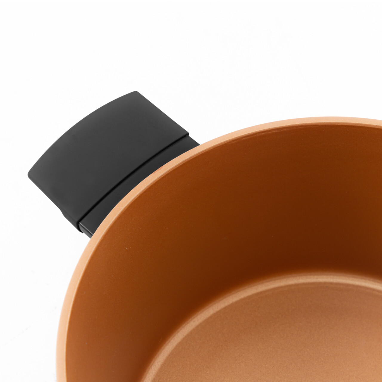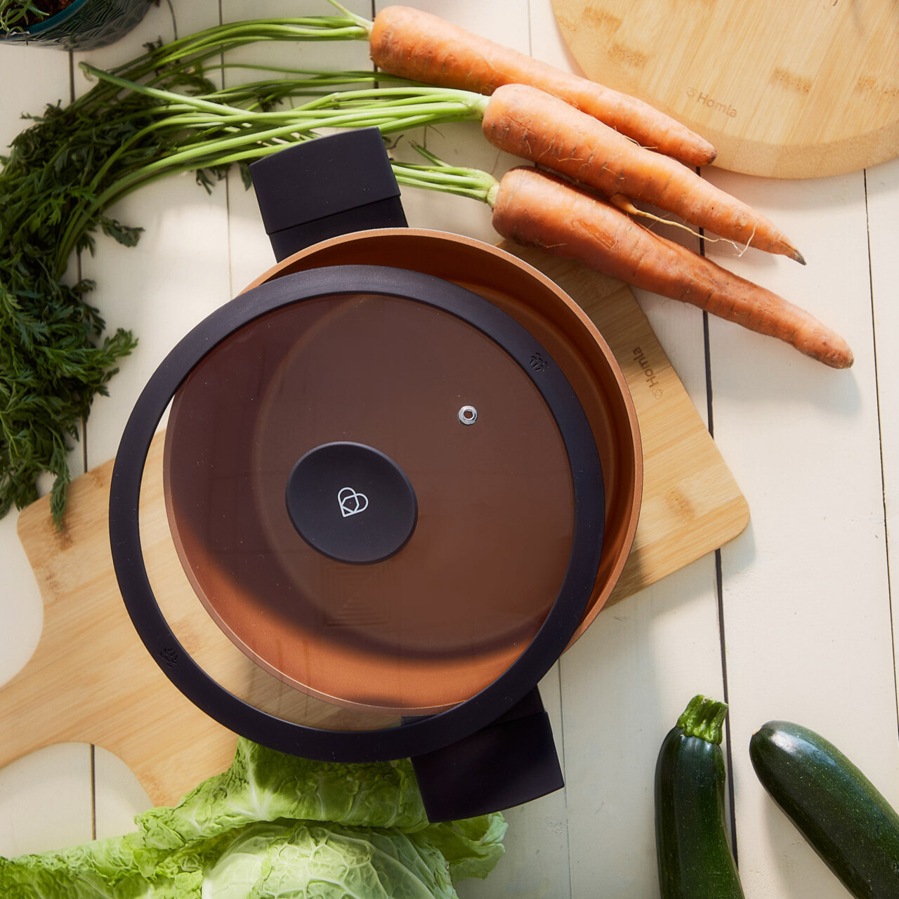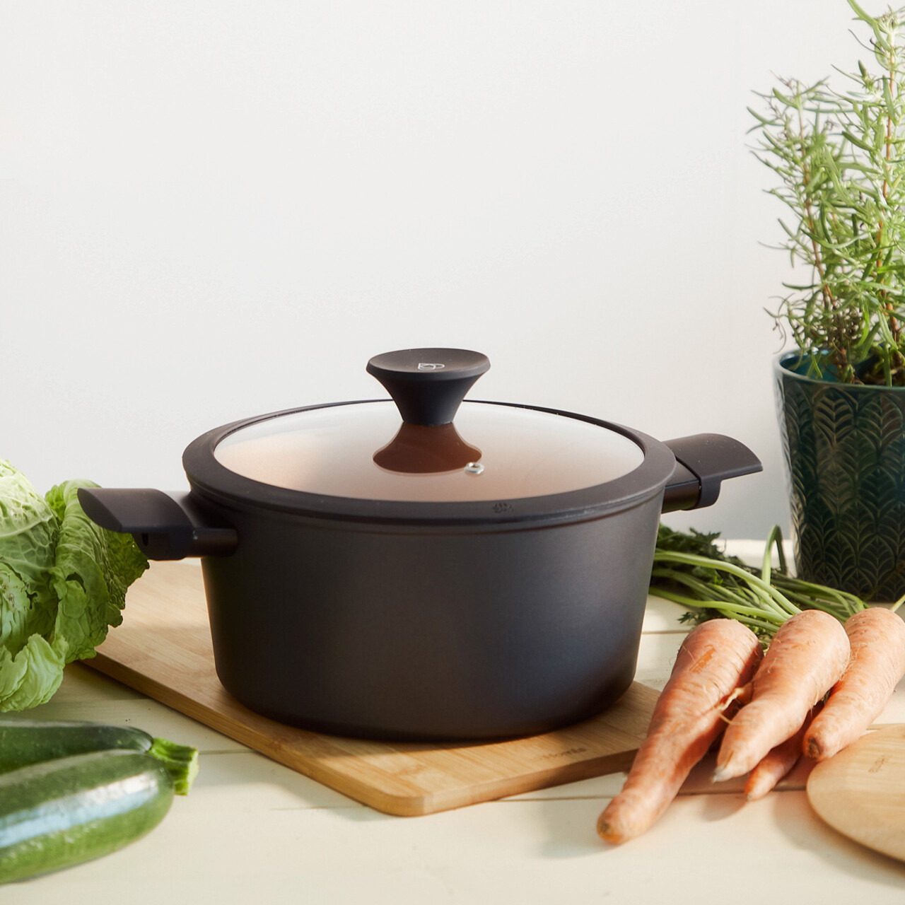 Oala cu o capacitate de 4,2 L, potrivita pentru gatit pe toate tipurile de aragaz, echipata cu un capac de sticla temperata si manere soft touch.