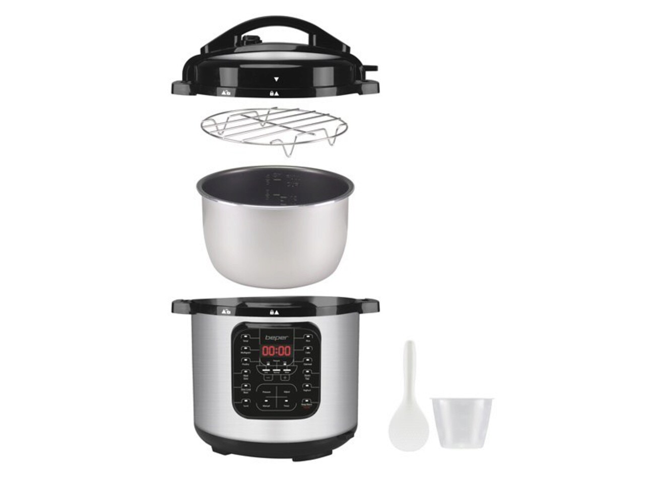 Oala electrica sub presiune Beper, 1000 W- 1200 W, 29x30x34 cm, inox, negru/gri