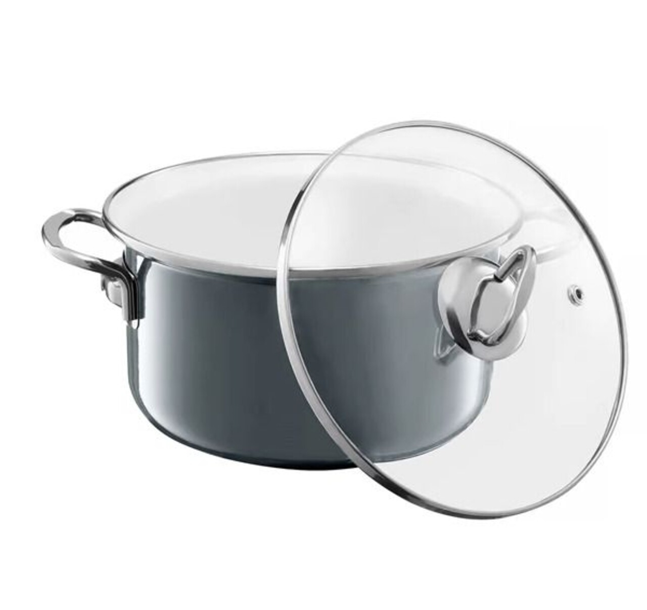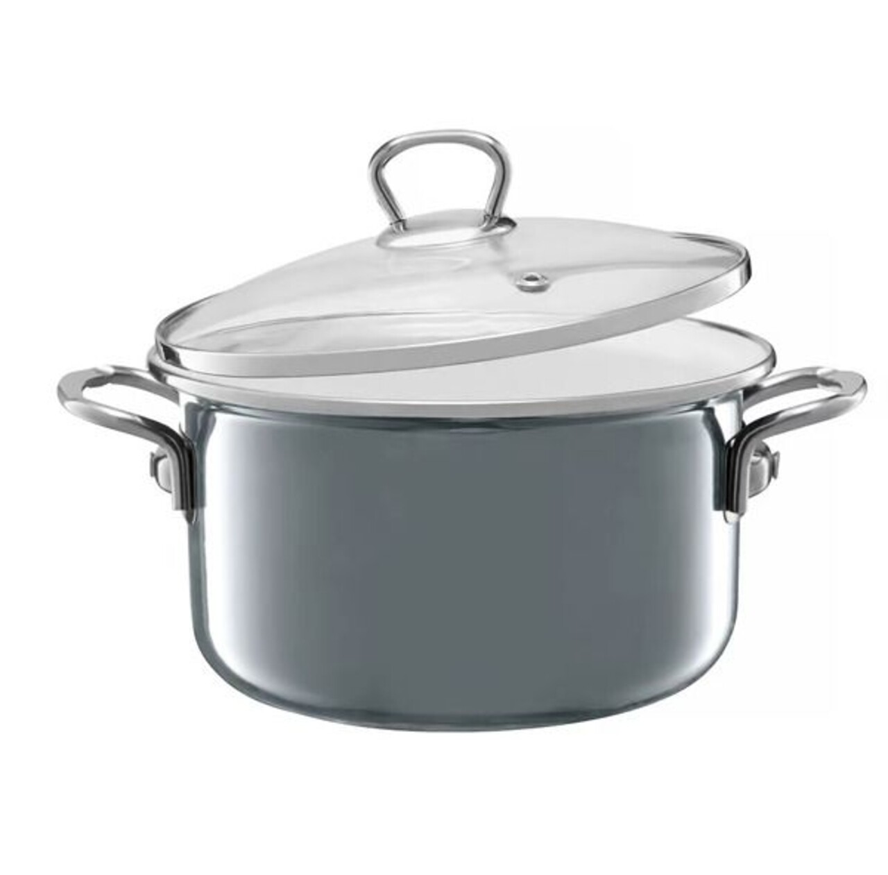 Oala emailata cu capac Optimum, Emalia Olkusz, 1.3 L, otel carbon, gri