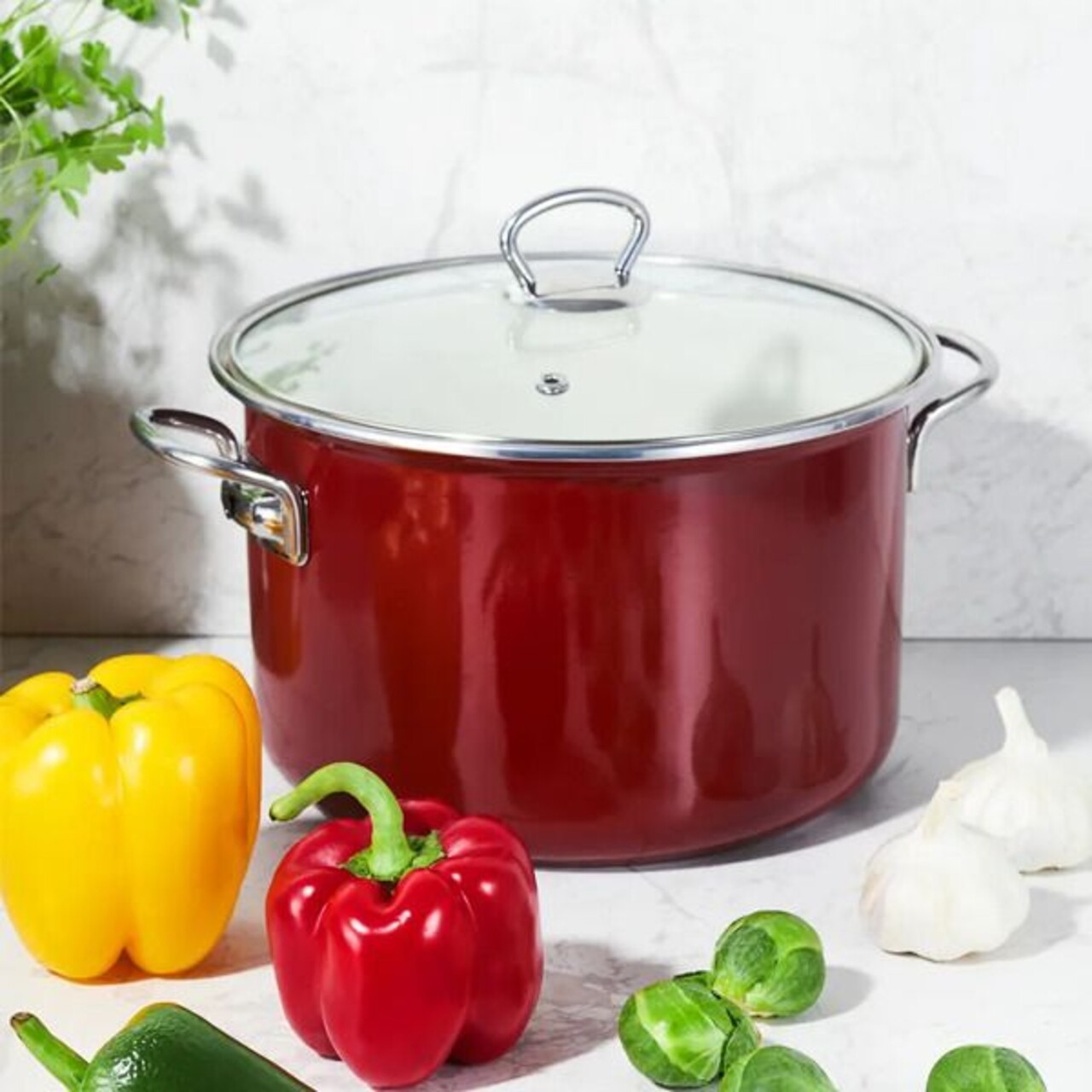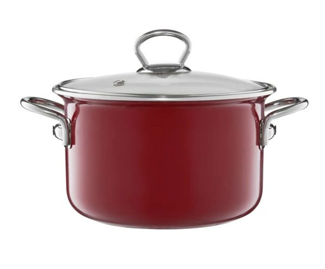 Oala emailata cu capac Optimum, Emalia Olkusz, 1.3 L, otel carbon, rosu pruna