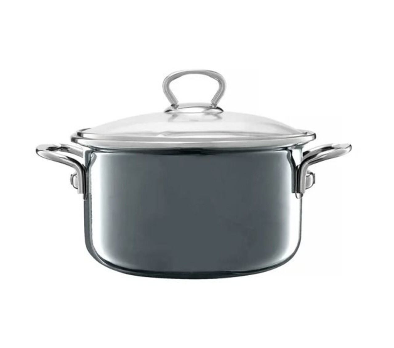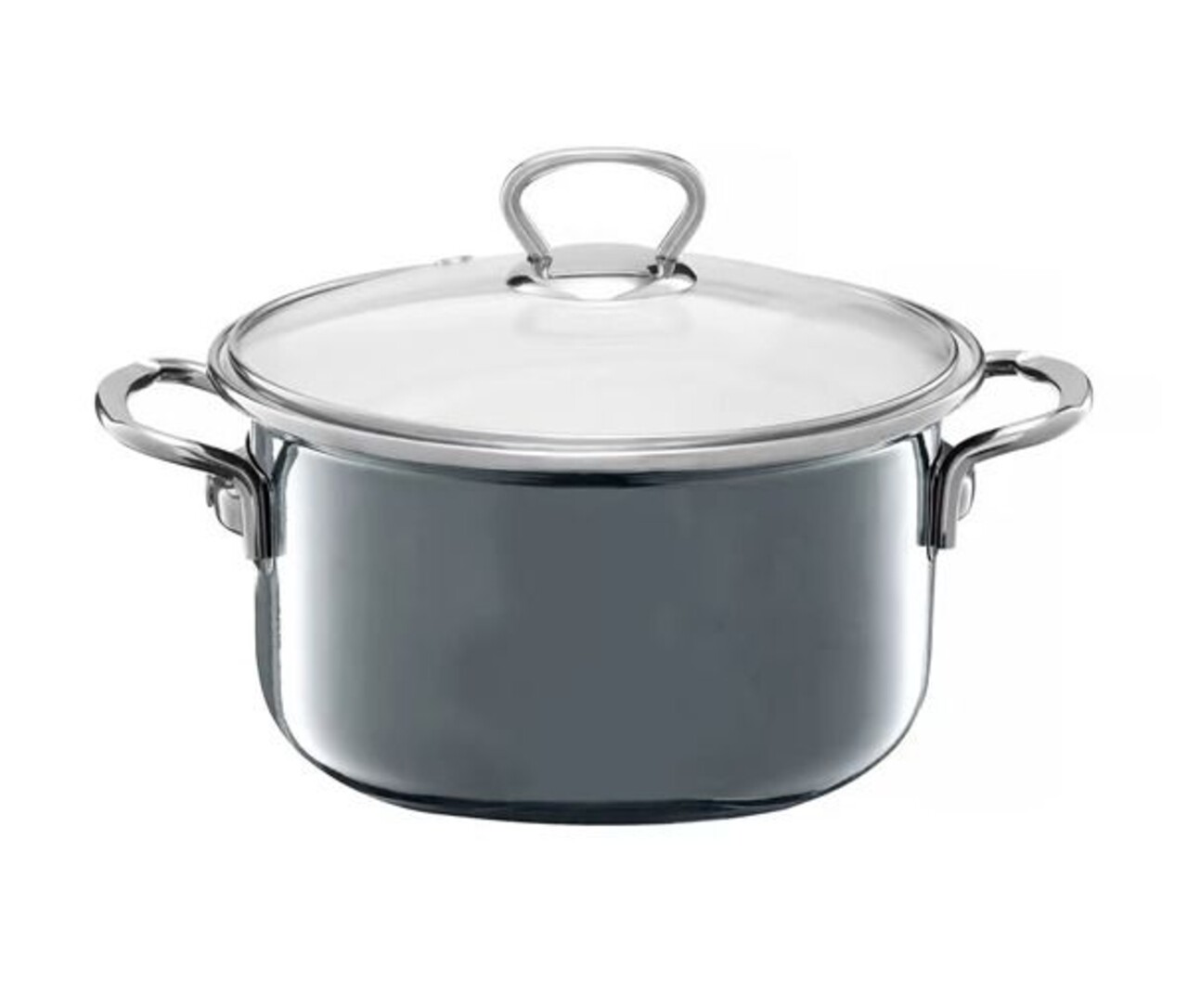Oala emailata cu capac Optimum, Emalia Olkusz, 2.6 L, otel emailat, gri