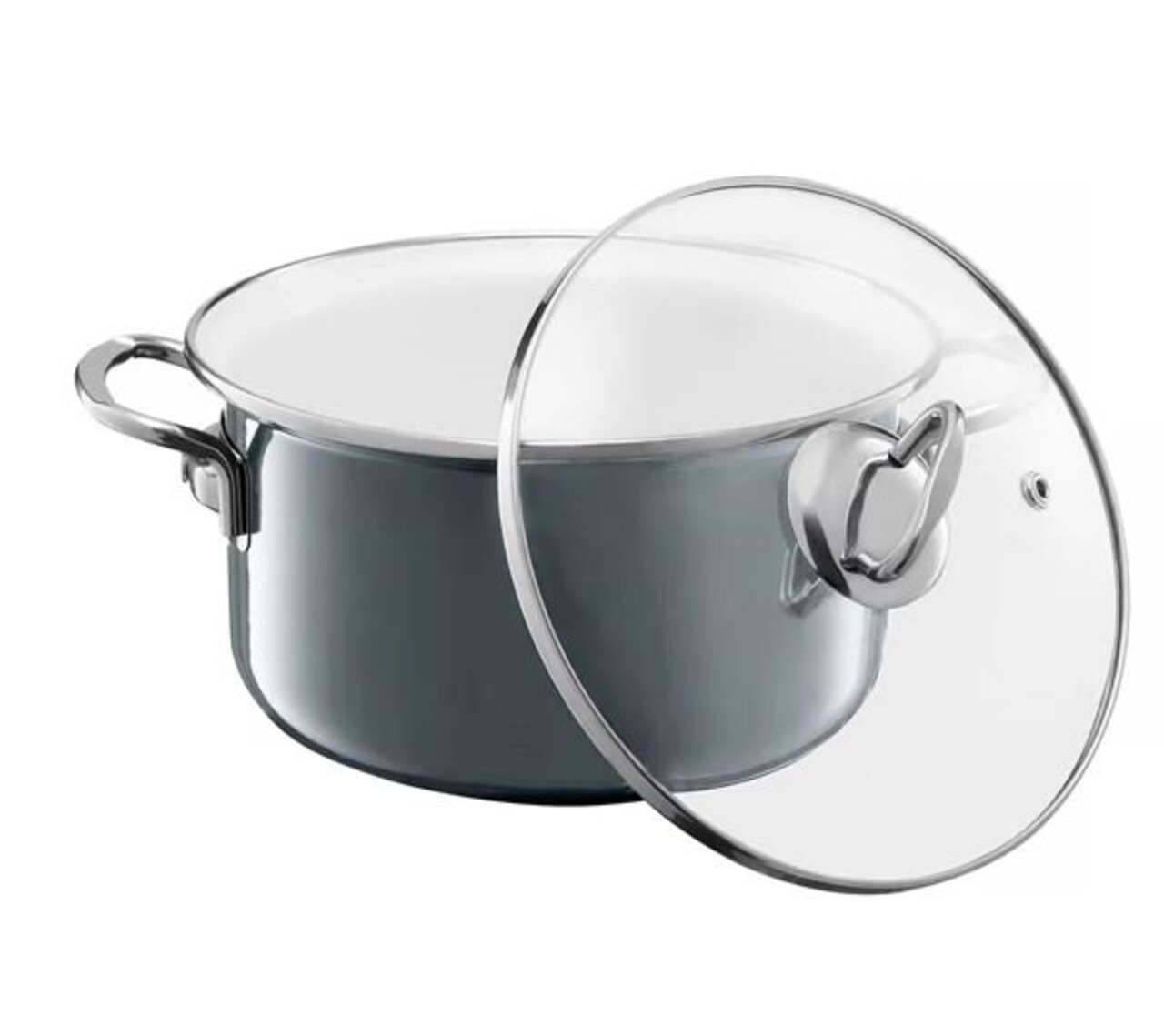 Oala emailata cu capac Optimum, Emalia Olkusz, 4.8 L, otel carbon, gri