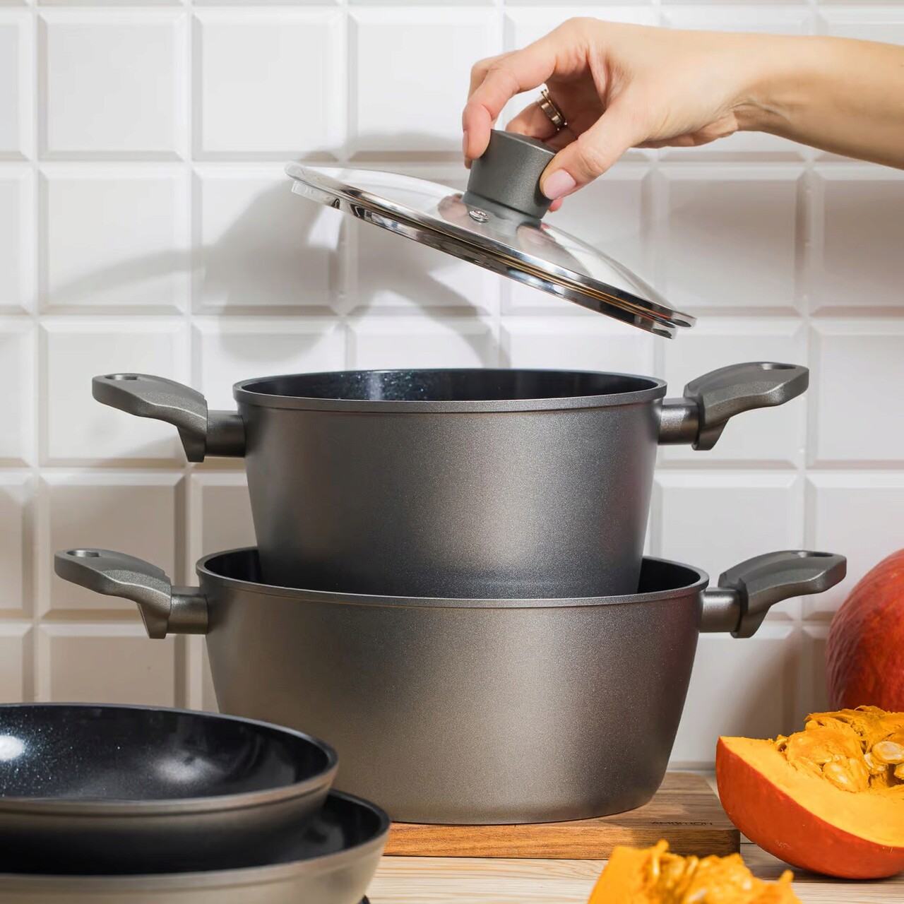 Oala inalta cu capac Verso, Ambition, invelis Qualum Ceramic, 20 cm, 3.6 L, aluminiu, gri
