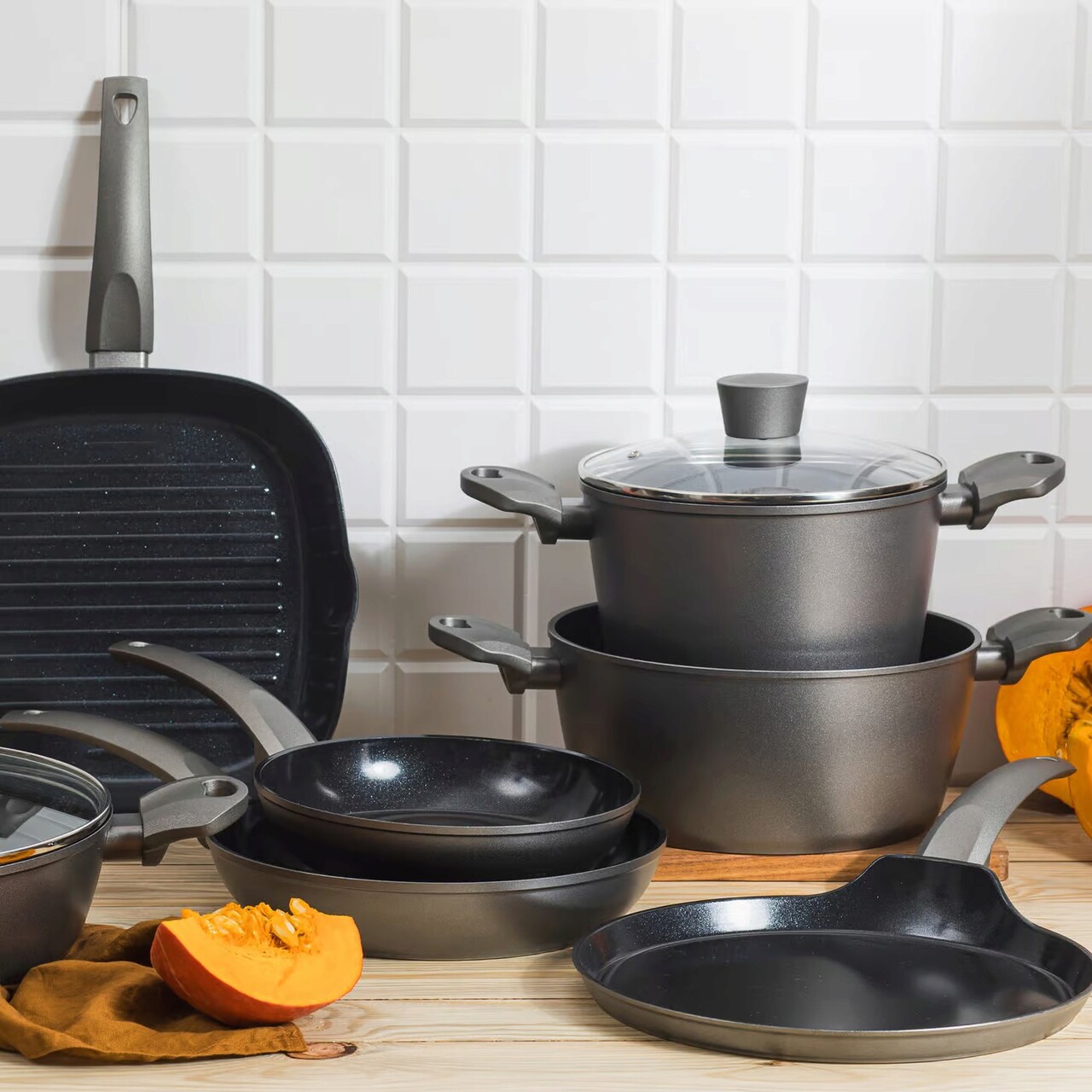 Vasele din linia Verso sunt fabricate din aluminiu forjat care este rezistent la deformari. Aceste produse sunt acoperite la interior cu un strat ceramic antiaderent Qualum Ceramic. Acoperirea ceramica se bazeaza pe tehnologia Xerogel, este realizata din minerale naturale, nu contine PFAS si PTFE, precum si PFOA, cadmiu si plumb, fiind astfel mai ecologica si mai sigura pentru sanatate. Suprafata perfect neteda ofera proprietati antiaderente excelente si faciliteaza curatarea. Manerele sunt acoperite cu un material special Soft Touch care asigura o prindere ferma in mana. Produsele din linia Verso sunt potrivite pentru toate tipurile de aragazuri, inclusiv pentru plitele cu inductie.
