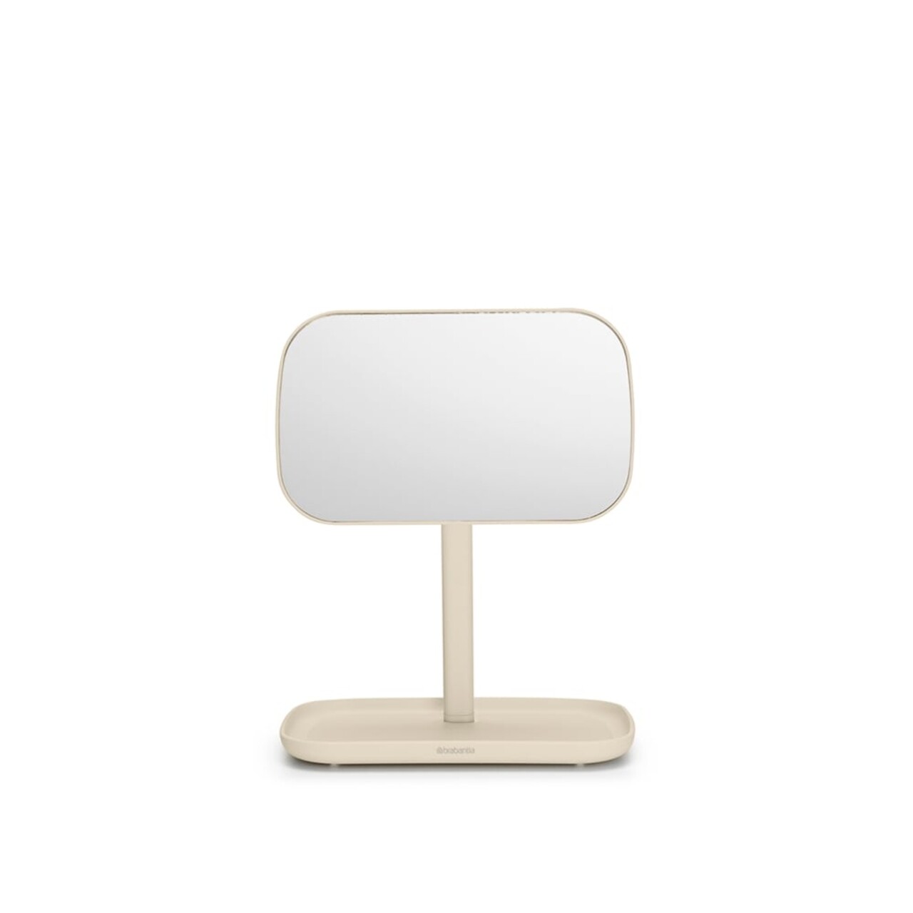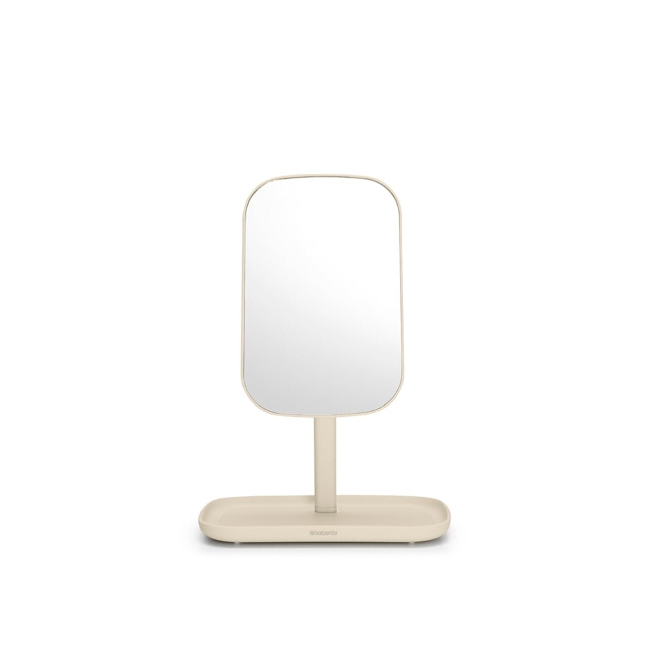 Oglinda cosmetica cu tava, Brabantia, Soft Beige, reglabila la 360 grade, factor marire x 5, 20x12.6x28.3 cm, polipropilena, bej