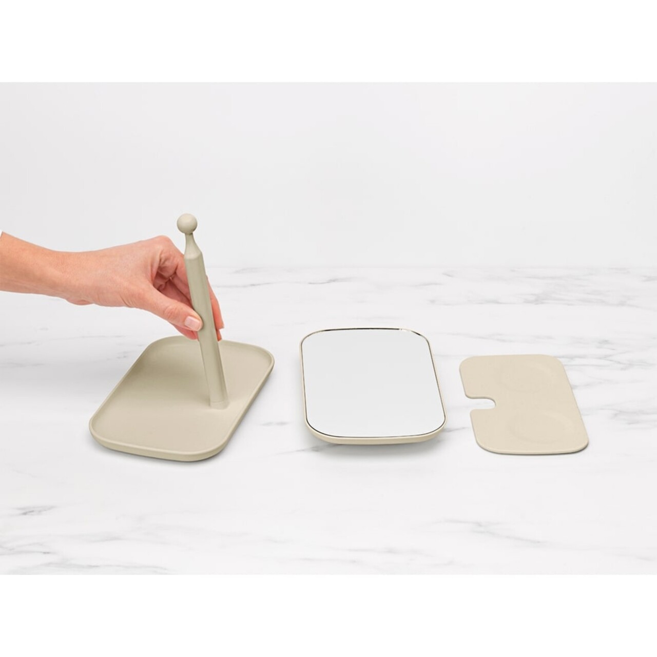 Tava de depozitare antiderapanta – cu suport din silicon pentru a asigura ca machiajul sau bijuteriile raman la locul lor.