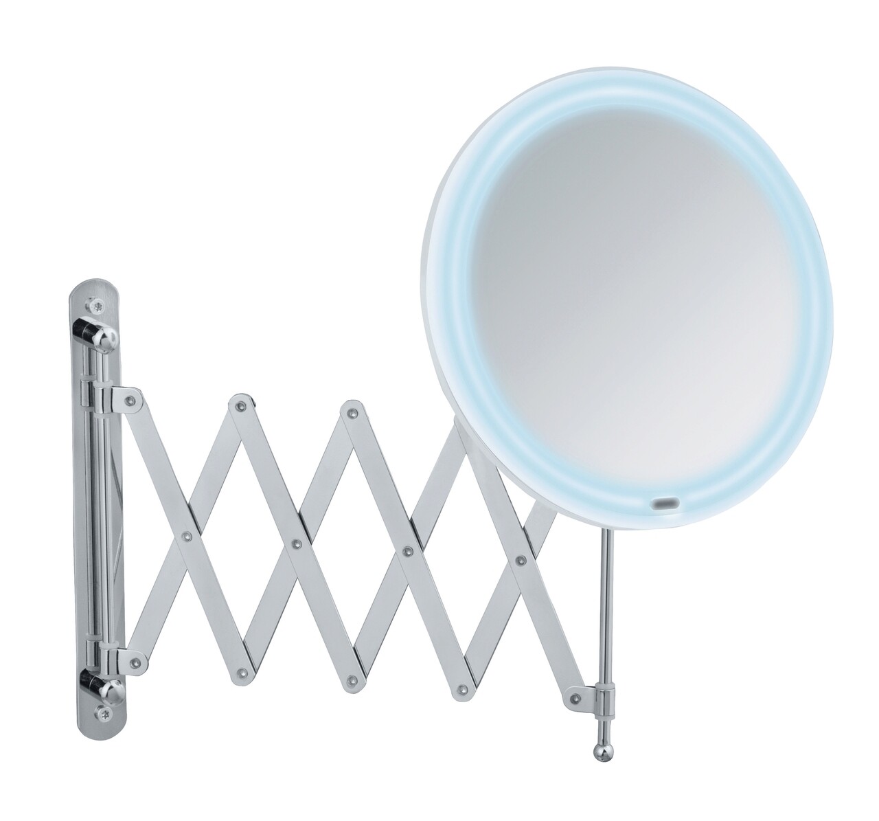 Oglinda cosmetica telescopica, Wenko, Barona, LED, 20 x 55 x 34 cm, inox/plastic, gri