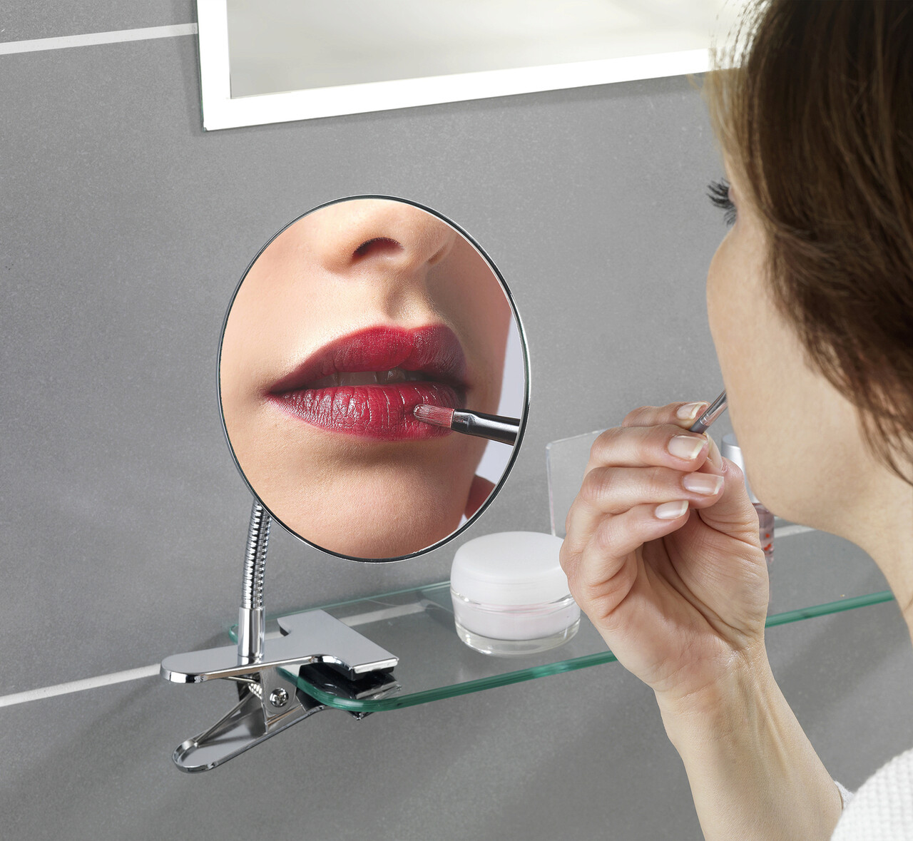 Oglinda cosmetica, Wenko, Cosmetic Clip 5x, 15 x 27 cm, inox, gri
