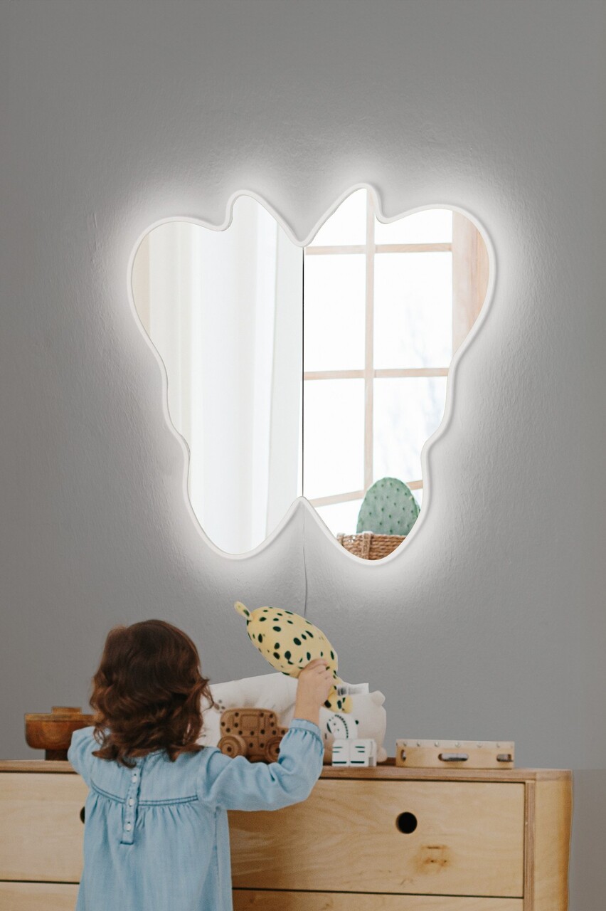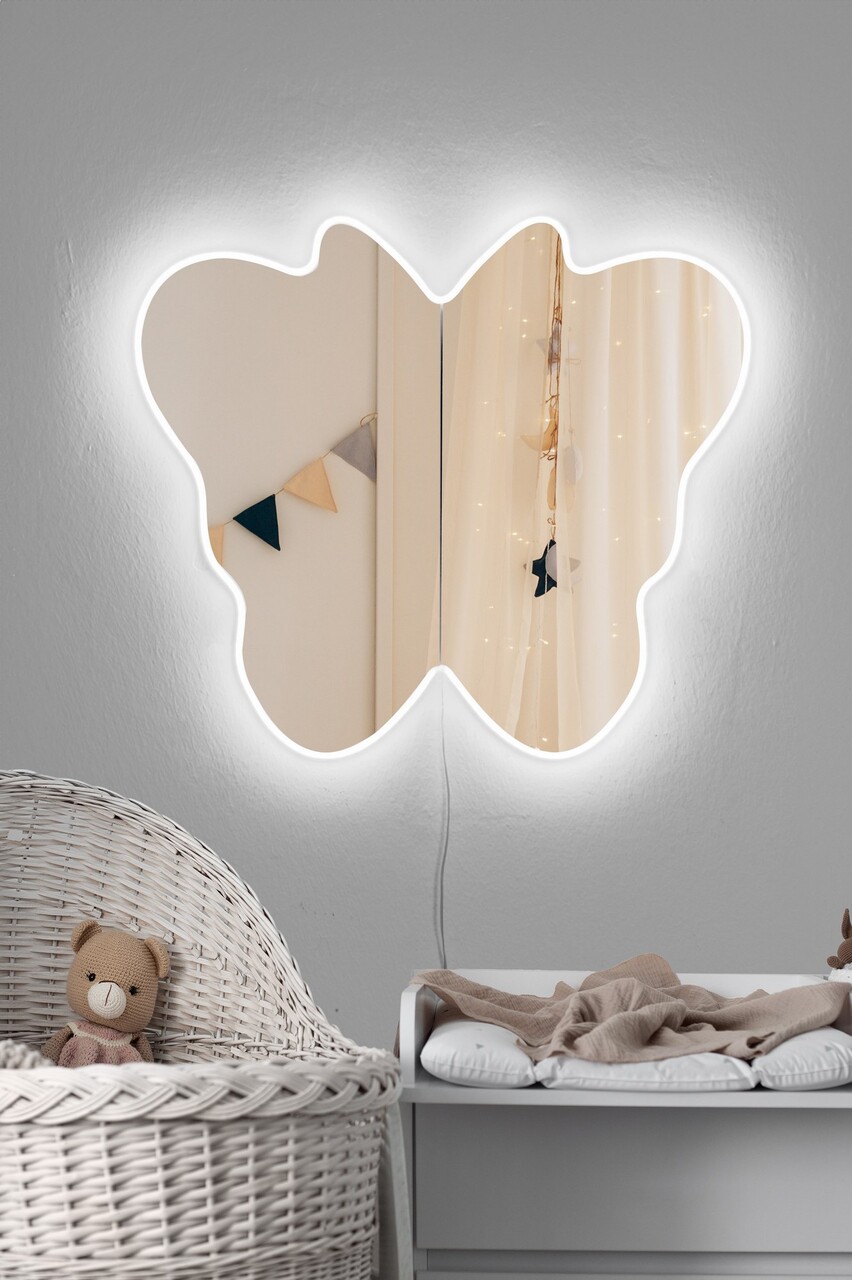 Oglinda cu Iluminare Led, Mirrorland, Butterfly Silver, Oglinda acrilica;MDF, Alb