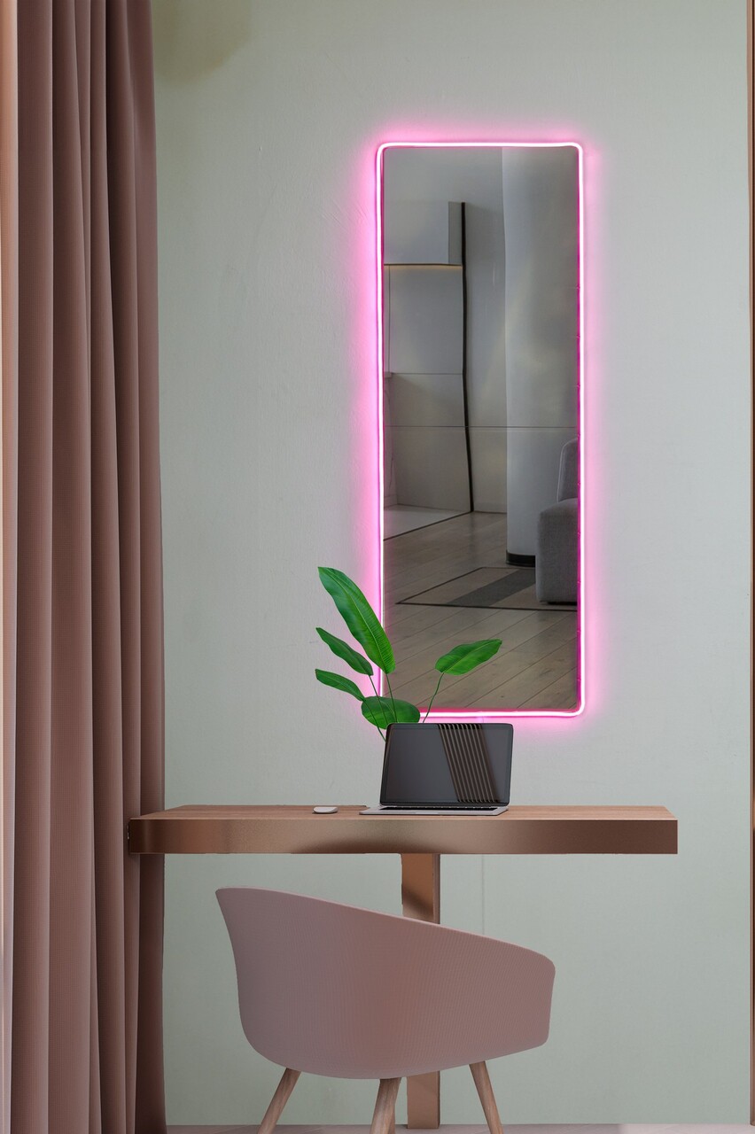 Oglinda cu Iluminare Led, Mirrorland, Rectangular, Oglinda acrilica;MDF, Roz