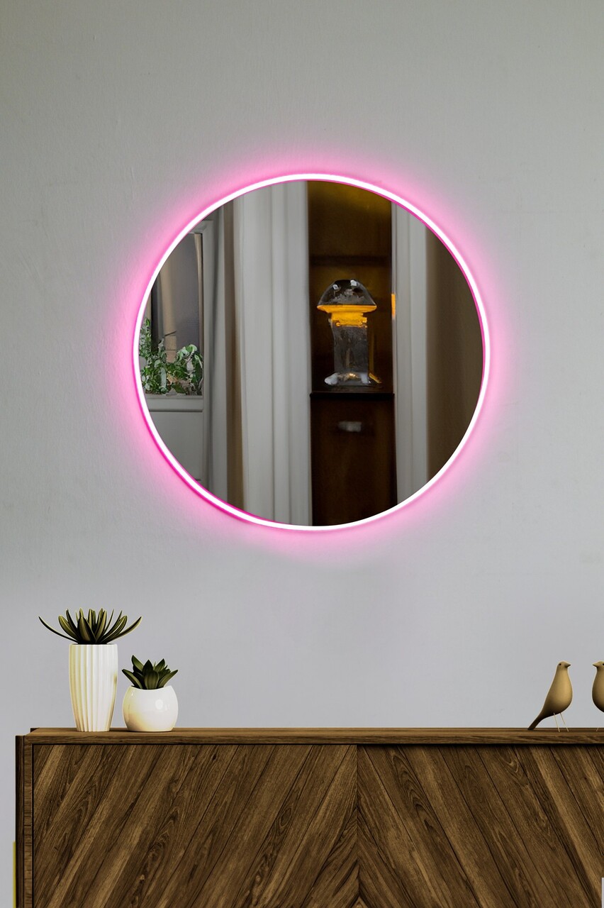 Oglinda cu Iluminare Led, Mirrorland, Round, Oglinda acrilica;MDF, Roz