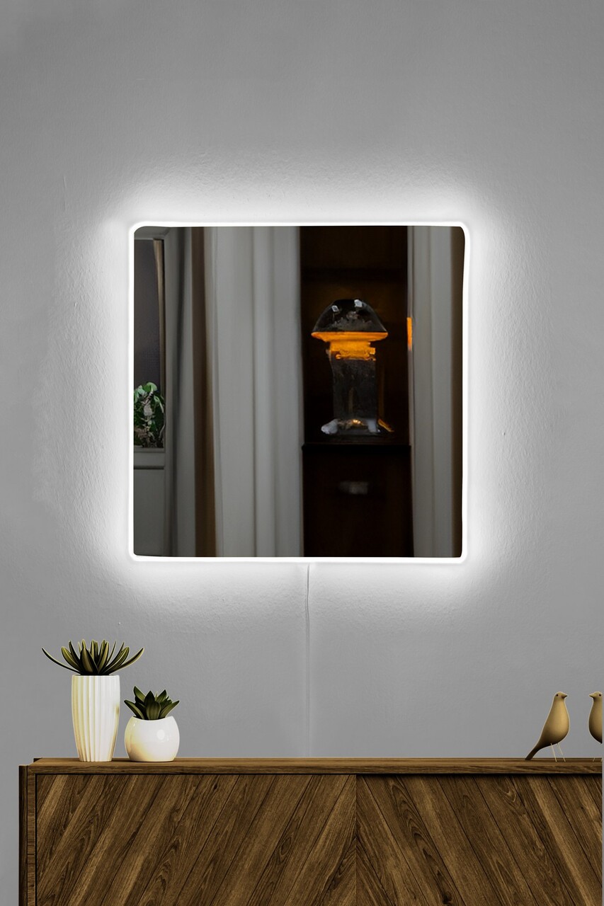 Oglinda cu Iluminare Led, Mirrorland, Square, Oglinda acrilica;MDF, Alb