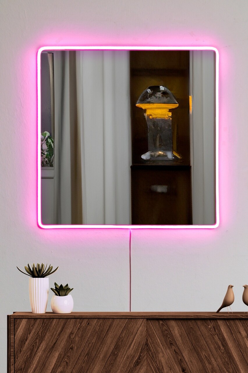 Oglinda cu Iluminare Led, Mirrorland, Square, Oglinda acrilica;MDF, Roz