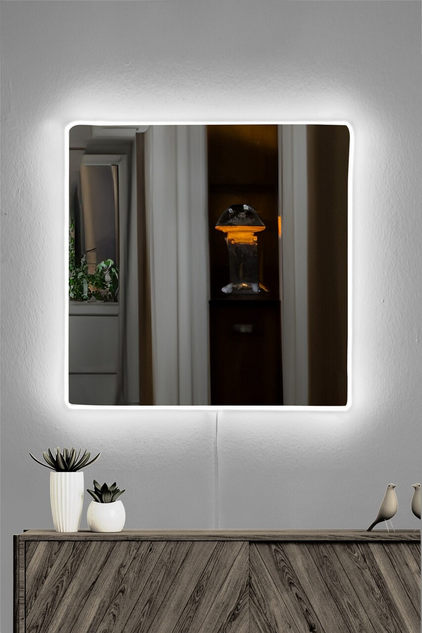 Oglinda cu Iluminare Led, Mirrorland, Square, Oglinda acrilica;MDF, Alb