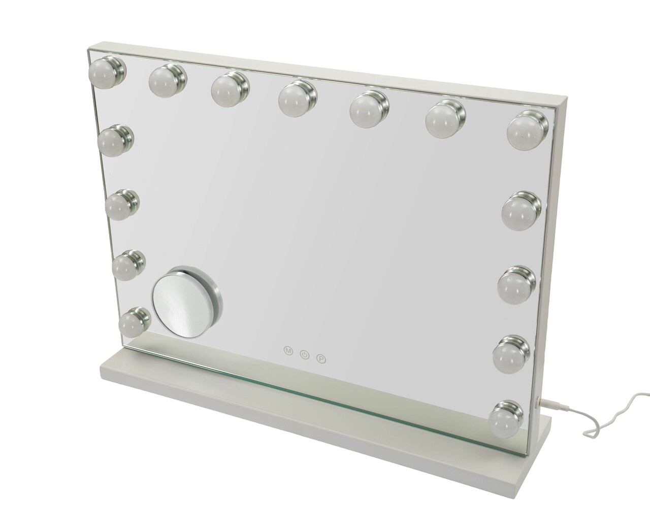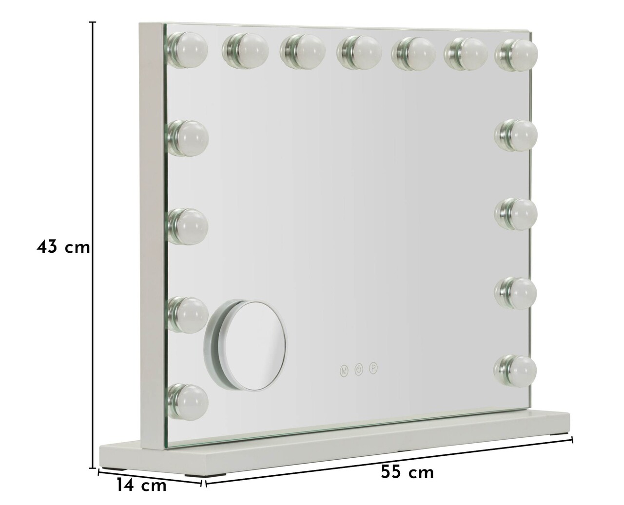 Oglinda de masa cu LED-uri, Mauro Ferretti, Hollywood, 55x14x43 cm, fier, alb