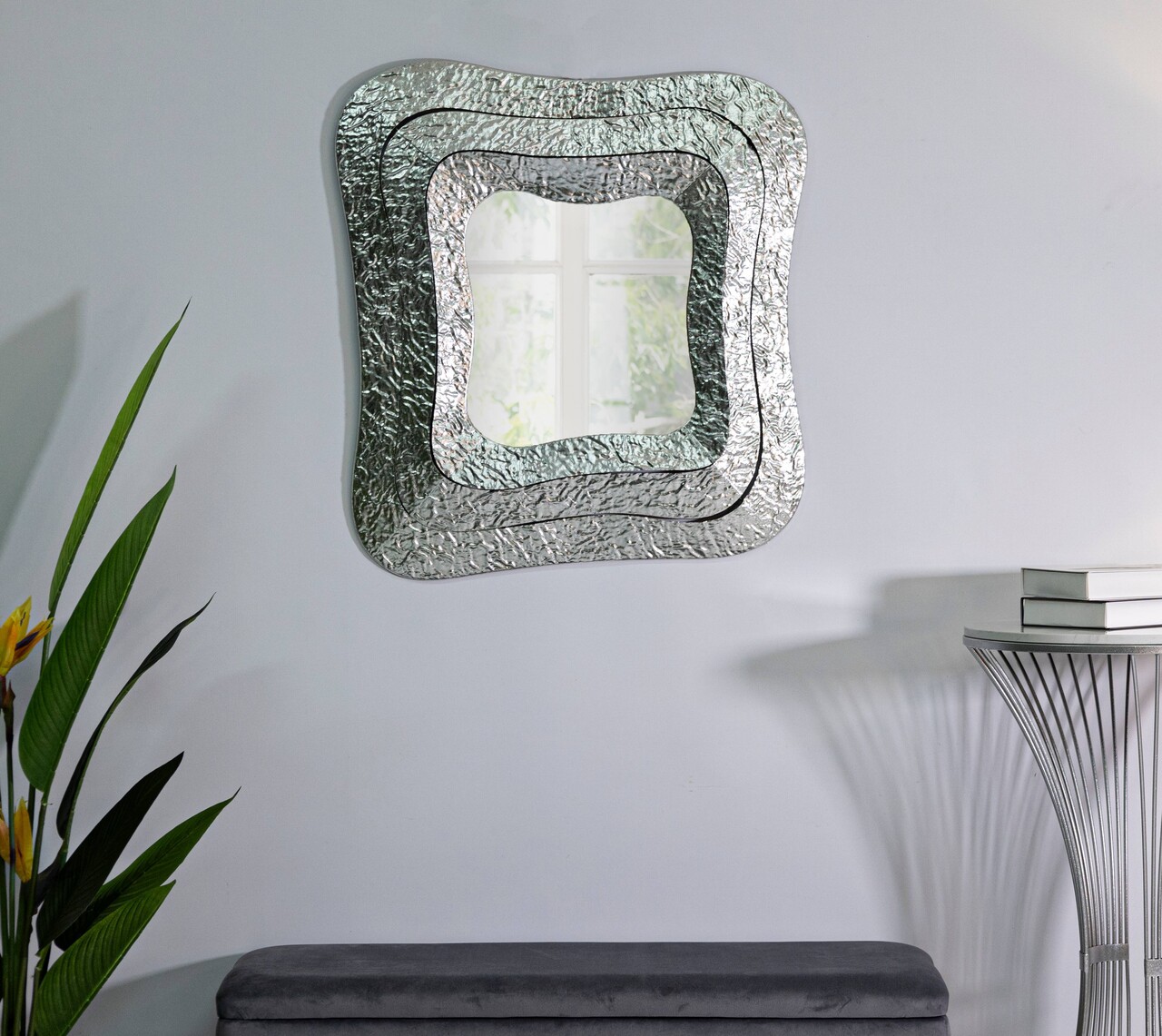 Oglinda decorativa Aury, Mauro Ferretti, 74x79 cm, metal/oglinda, argintiu