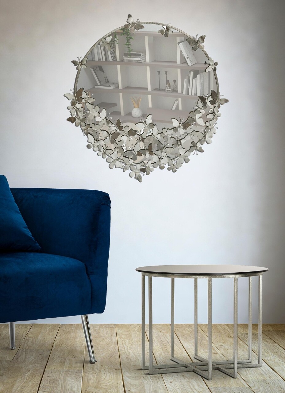 Oglinda decorativa Butterfly, Mauro Ferretti, Ø 91 cm, fier, argintiu