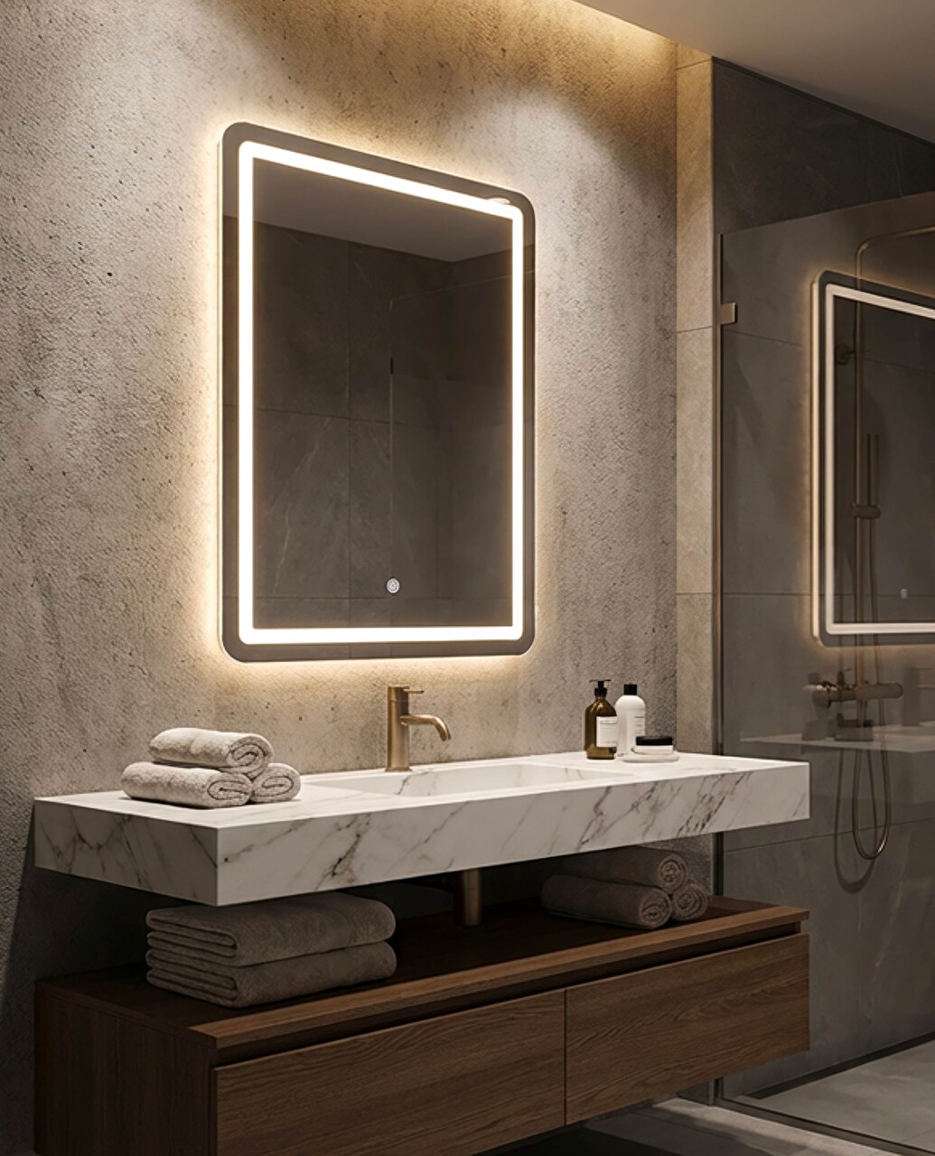 Design minimalist si lumina discreta pentru o reflexie impecabila. Oglinda de perete Simple LED pune in valoare orice spatiu prin eleganta sobra si functionalitate zilnica.