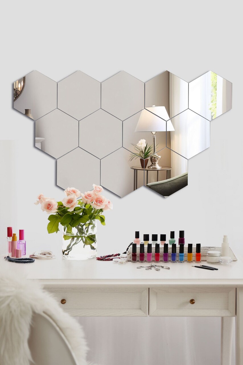 Oglinda decorativa, Mirrorland, Hexagon (12 Pieces), Oglinda acrilica;MDF, Argintiu