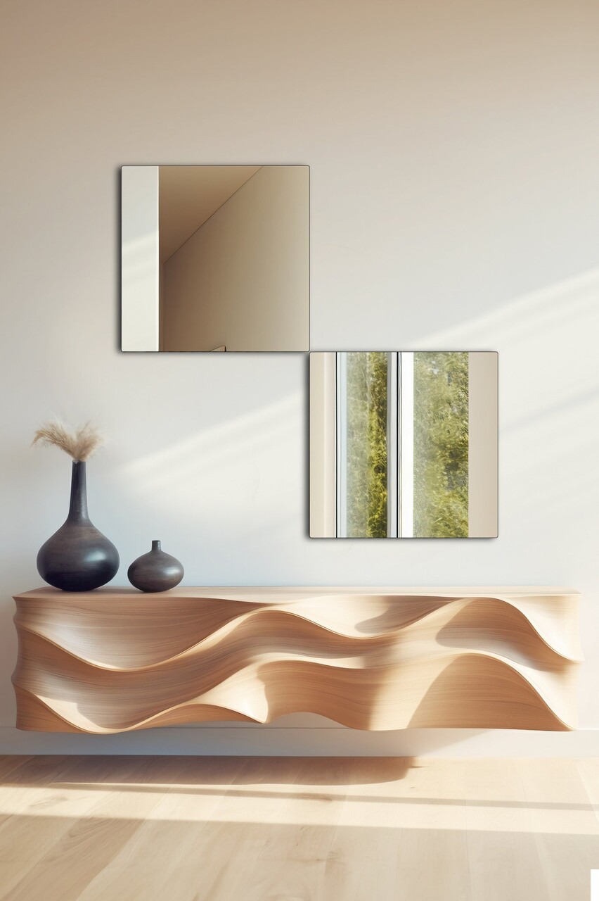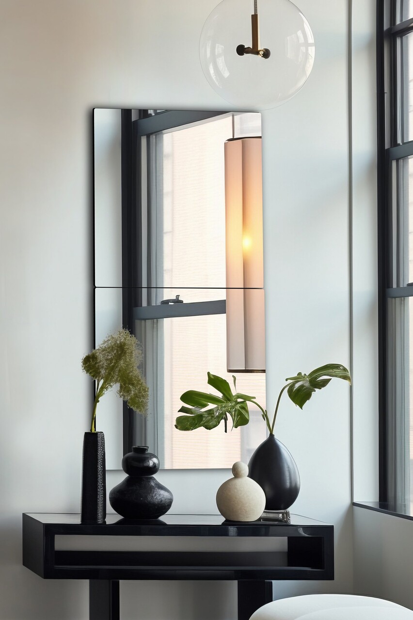 Oglinda decorativa, Mirrorland, Rectangular, Oglinda acrilica;MDF, Argintiu