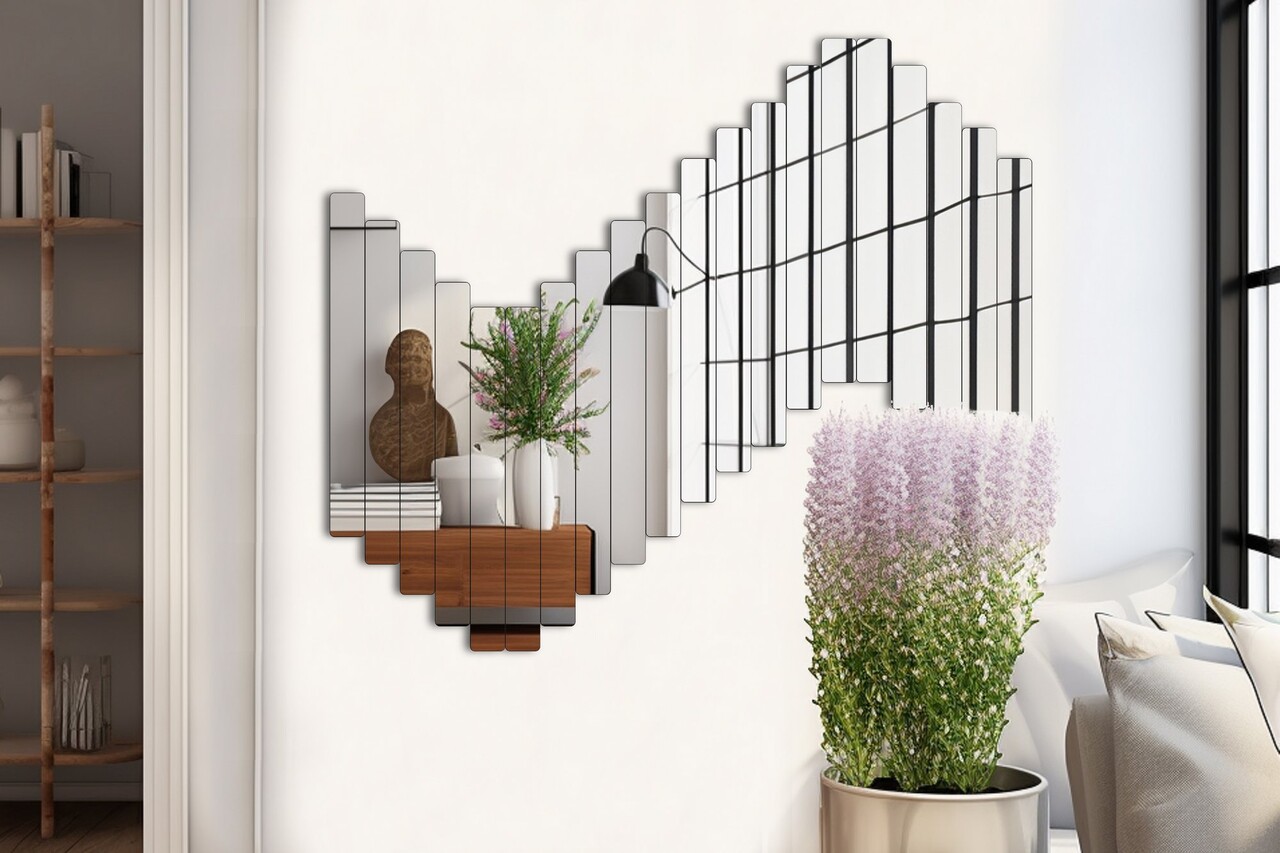 Oglinda decorativa, Mirrorland, Rectangular Stripe, Oglinda acrilica;MDF, Argintiu