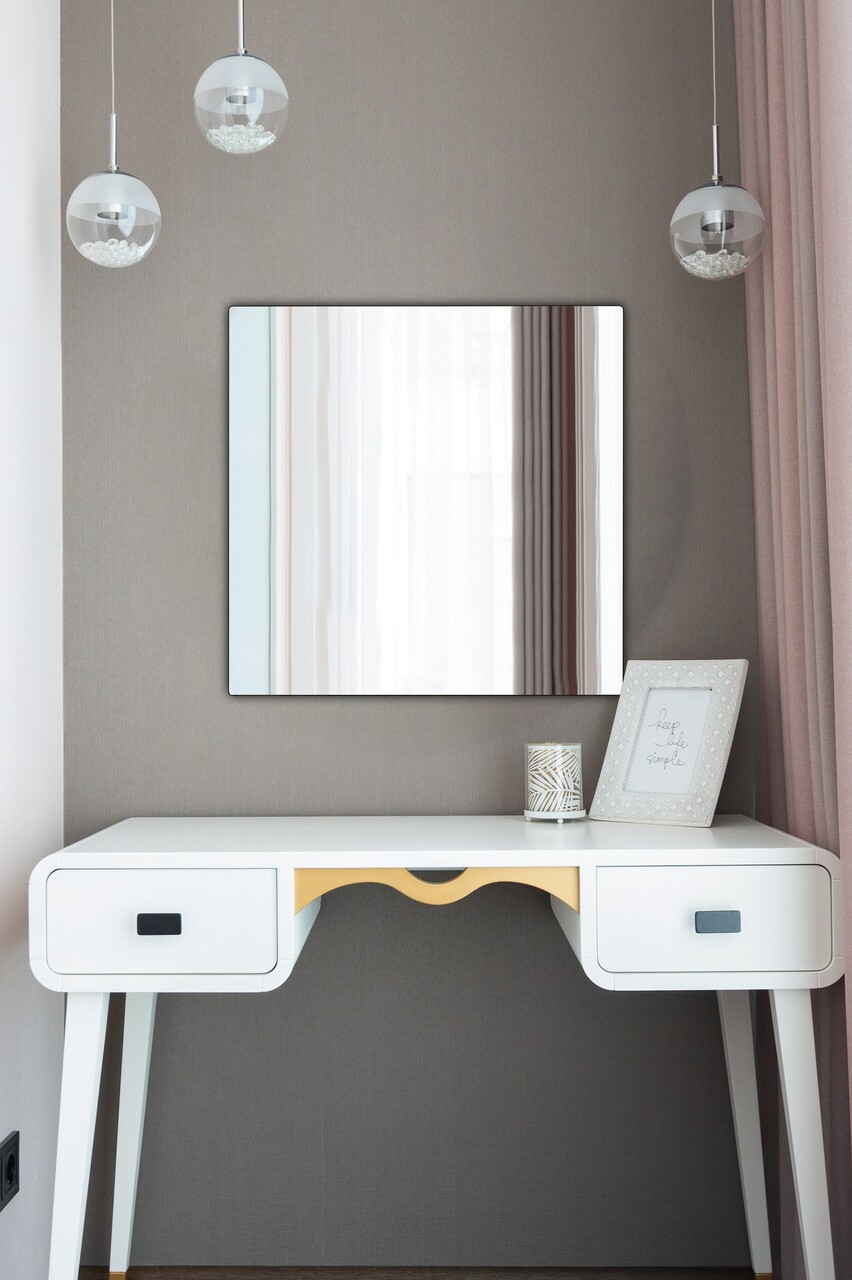 Oglinda decorativa, Mirrorland, Square, Oglinda acrilica;MDF, Argintiu
