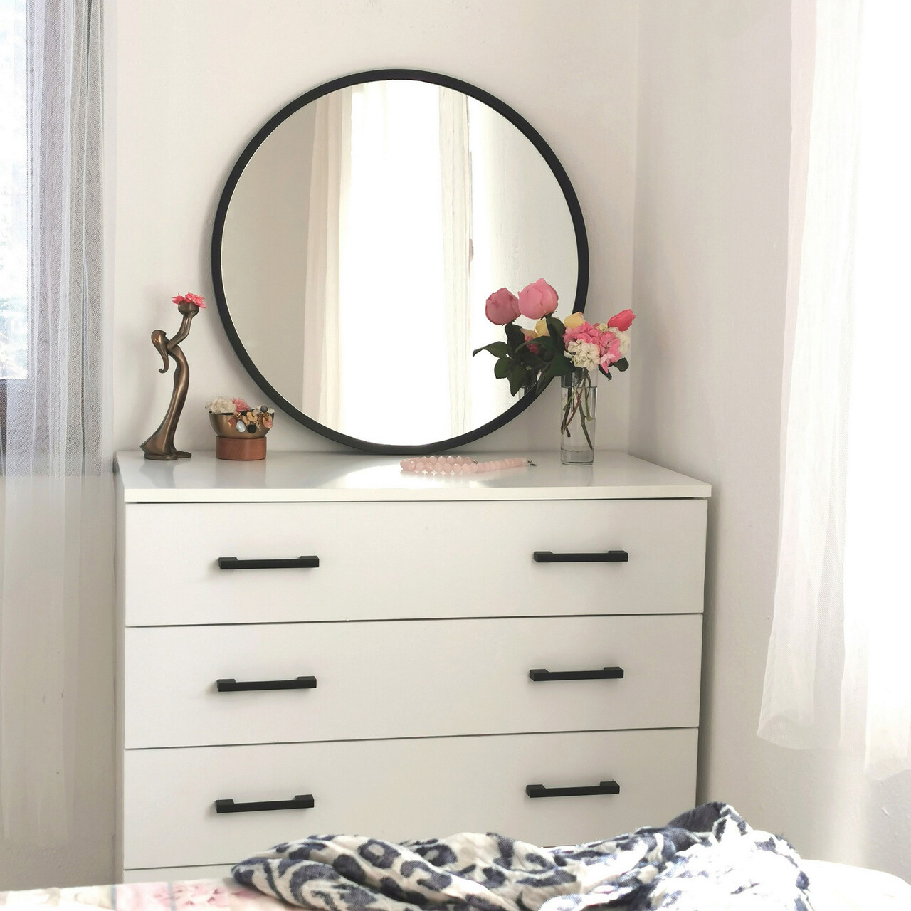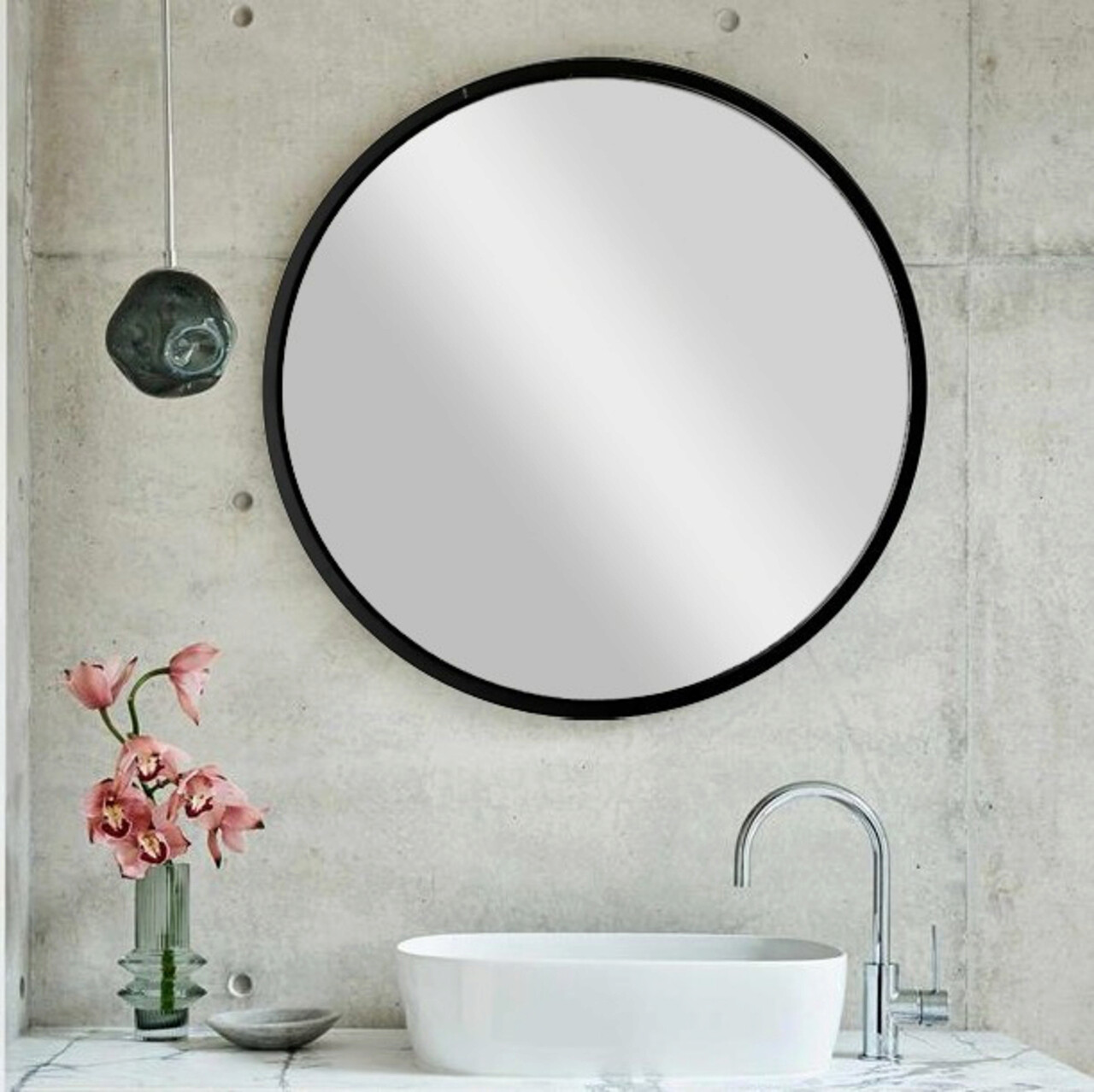 Oglinda decorativa, Neostill, Siyah Metal Çerçeve Yuvarlak Ayna A710, 60x60x2 cm, Metal, Negru