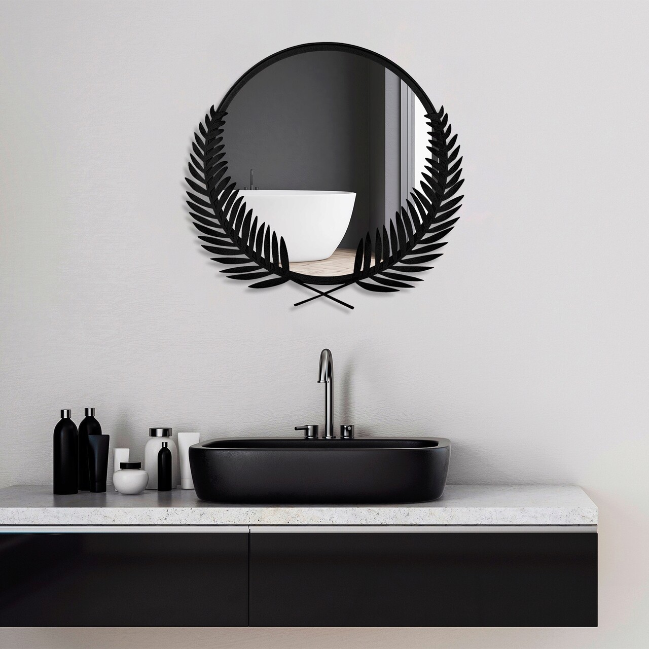 Oglinda decorativa, Palm Mirror L, Metal, Dimensiune: 59 x 57 cm, Negru