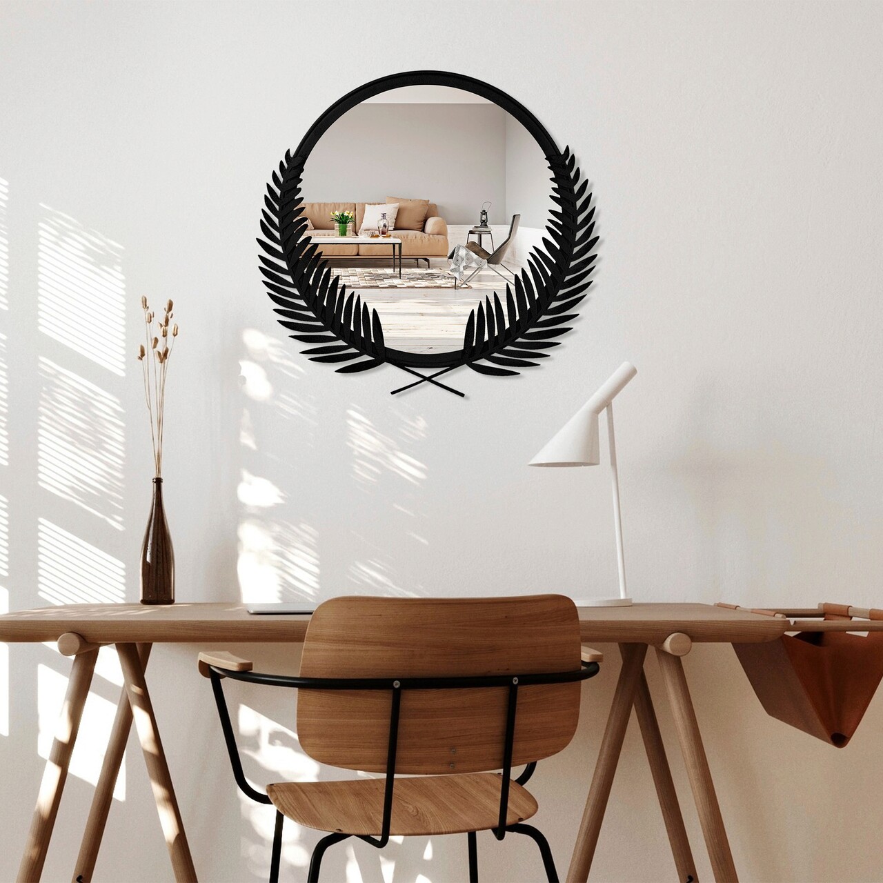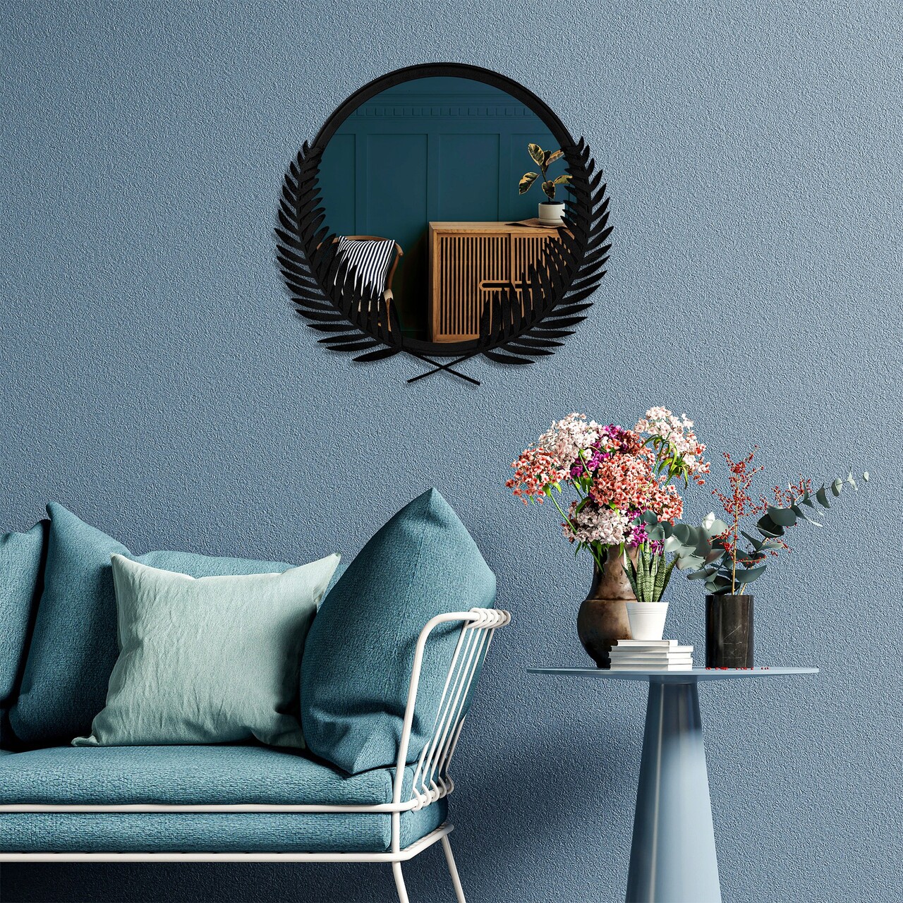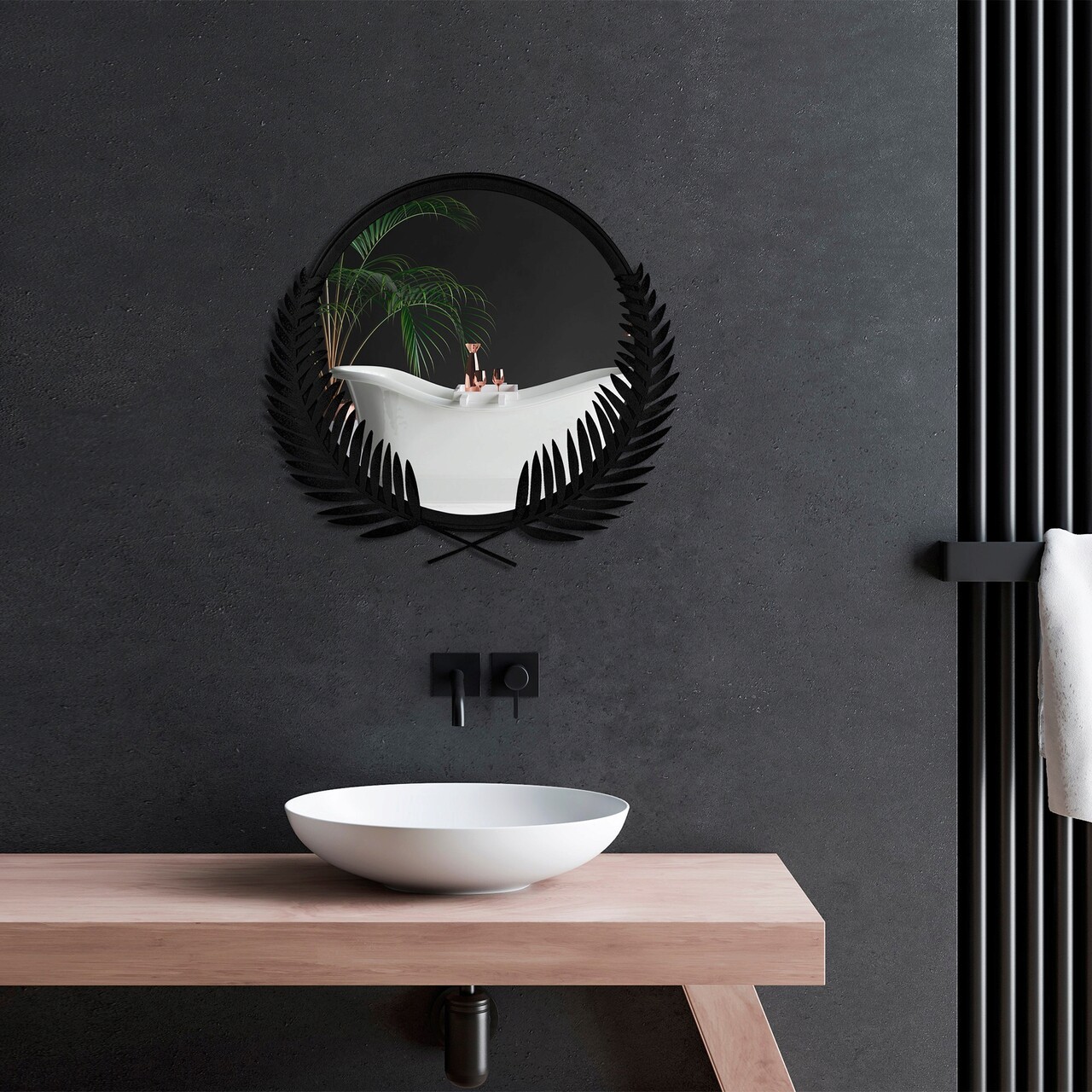 Oglinda decorativa, Palm Mirror M, Metal, Dimensiune: 48 x 45 cm, Negru
