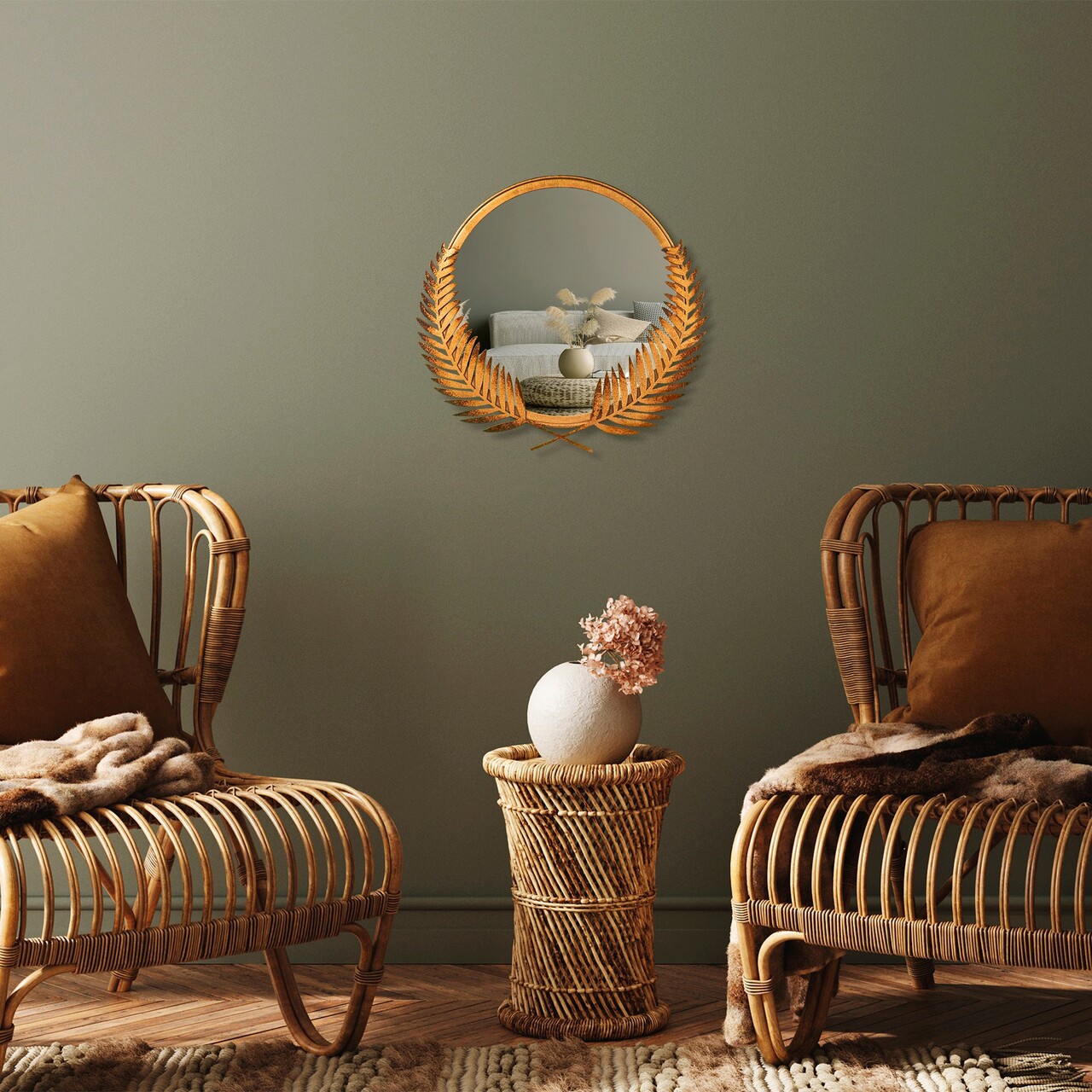 Oglinda decorativa, Palm Mirror S, Metal, Dimensiune: 35 x 34 cm, Bronz