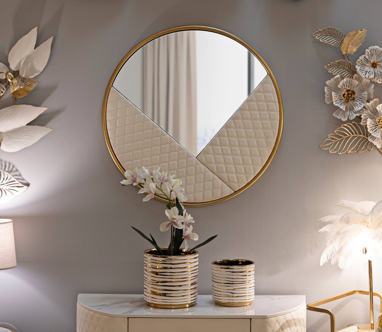 Oglinda decorativa Sharon, Mauro Ferretti, 80x80 cm, fier/MDF/oglinda, alb/auriu